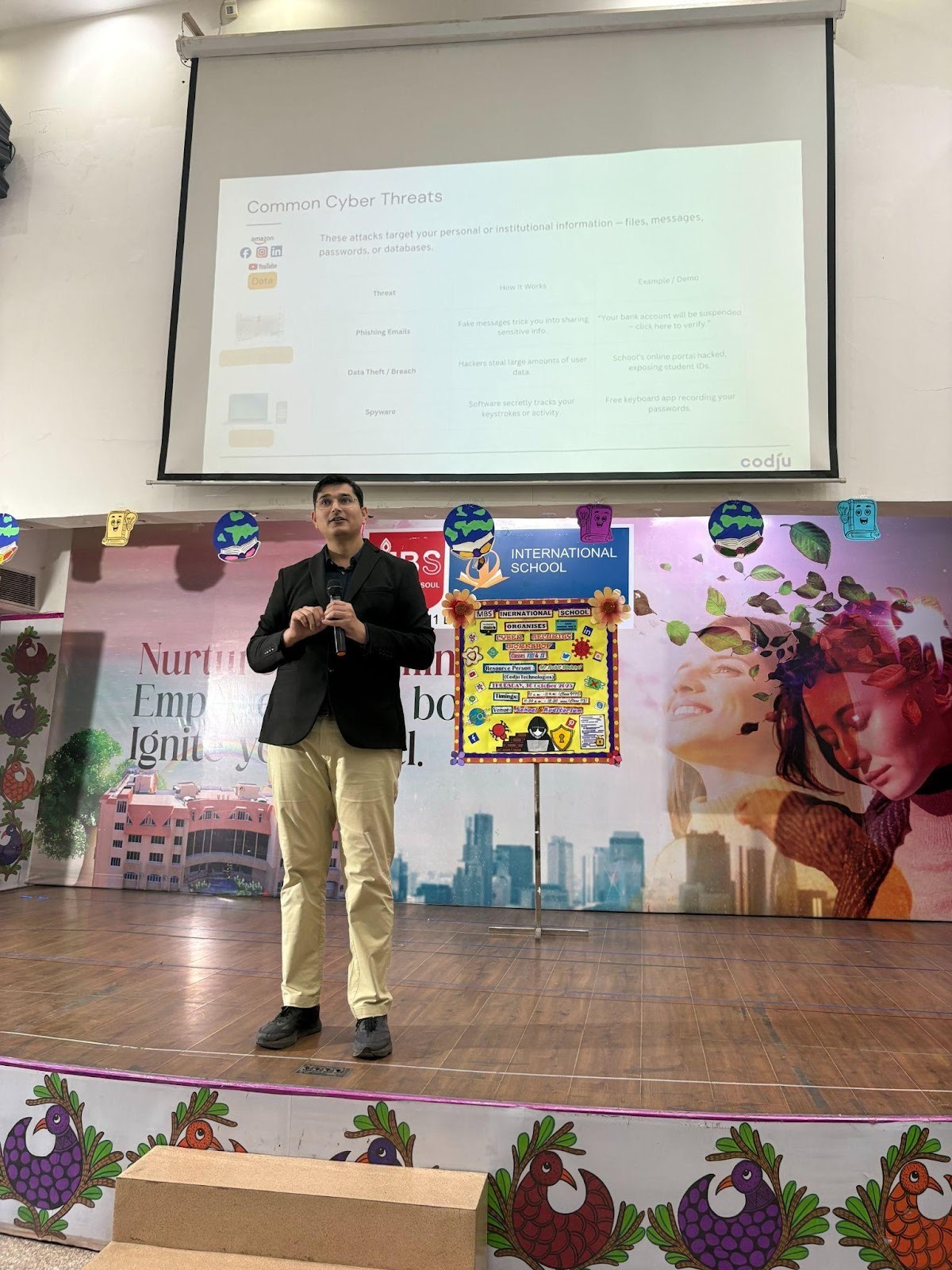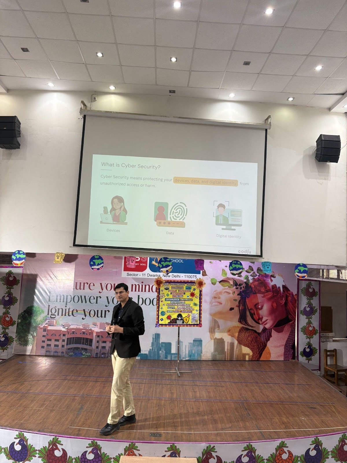 MBS International School, Sector 11, Dwarka, organized an enlightening Cyber Security Workshop for the students of Classes VIII and IX on Thursday, 30 October 2025, in the school auditorium. The sessions were conducted by Mr. Rohit Bishnoi, Founder & CEO of Codju Technologies and Founder of iQuest Coaching Institute, Patiala. An alumnus of IIT Kanpur and IIM Kozhikode, Mr. Bishnoi has over 17 years of experience in the EdTech industry.The month of October is observed as the National Cyber Security Awareness Month (NCSAM) every year to promote cyber hygiene and best practices across the country. The theme for 2025 — “Cyber Jagrit Bharat” — highlights the collective responsibility of all citizens in safeguarding the nation’s digital ecosystem. The initiative aims to build a strong defensive barrier to minimize vulnerabilities and protect systems from cyber threats.Aligned with this national mission, the workshop at MBS International School sought to educate students about safe and responsible internet usage. Mr. Bishnoi engaged learners with real-life examples, emphasizing the importance of password security, data privacy, and ethical online behavior. The session was highly interactive and informative, equipping students with practical tools to stay vigilant in the digital world and become responsible cyber citizens.