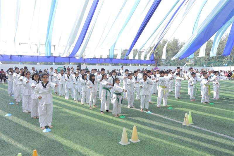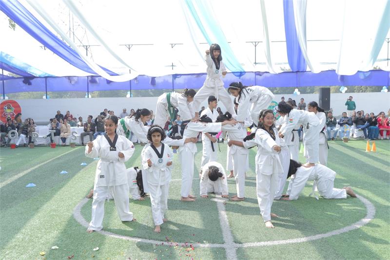 Nearly 700 students showcased exceptional talent through Rhythmic Yoga, Taekwondo, Football & Cricket Skills, Zumba, Group Dance, and more—reflecting teamwork, determination, and true sportsmanship.