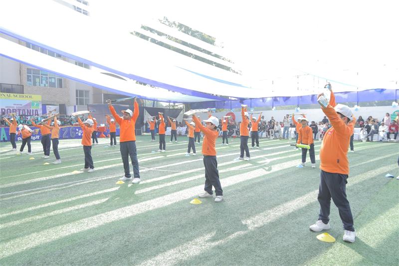 Following this, a spectacular band performance and march past was conducted by the four school houses—Vivekananda, Teresa, Curie, and Tagore—led by their respective House Captains. The synchronised steps and disciplined formations showcased the values of teamwork, dedication, and leadership.