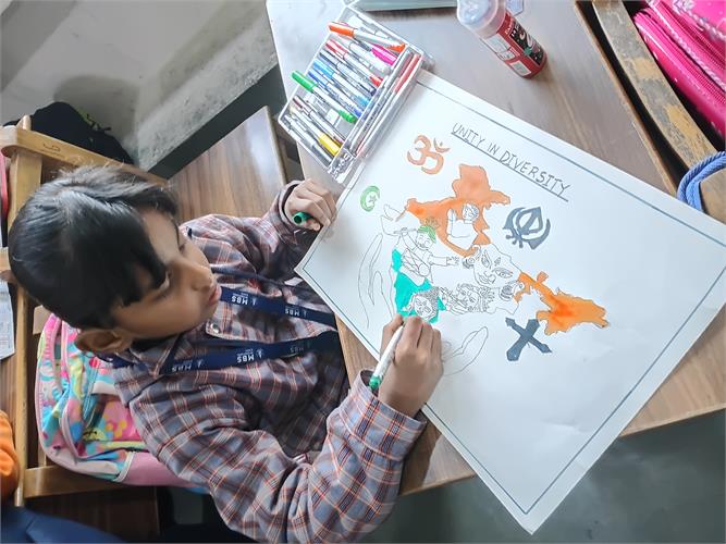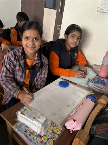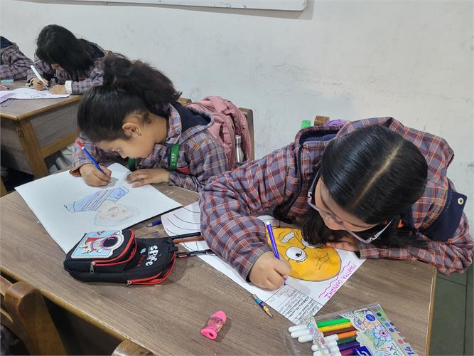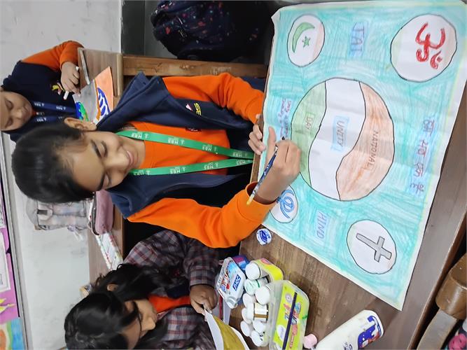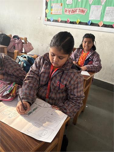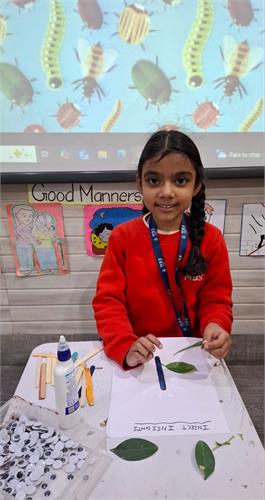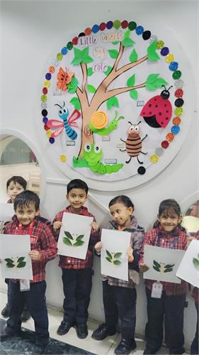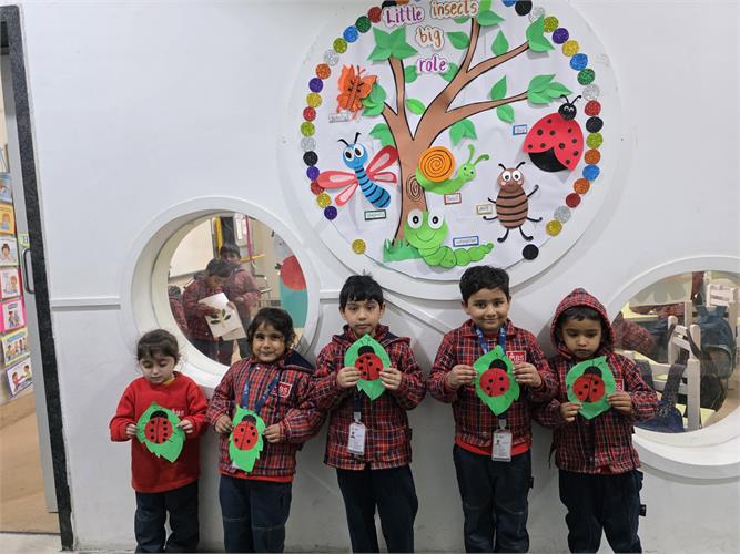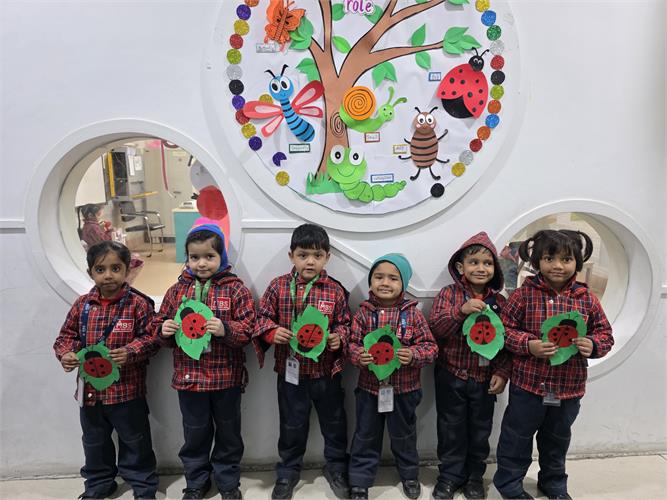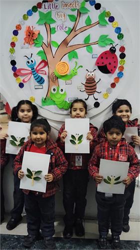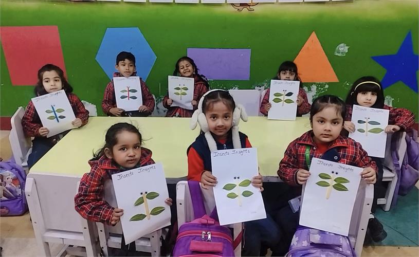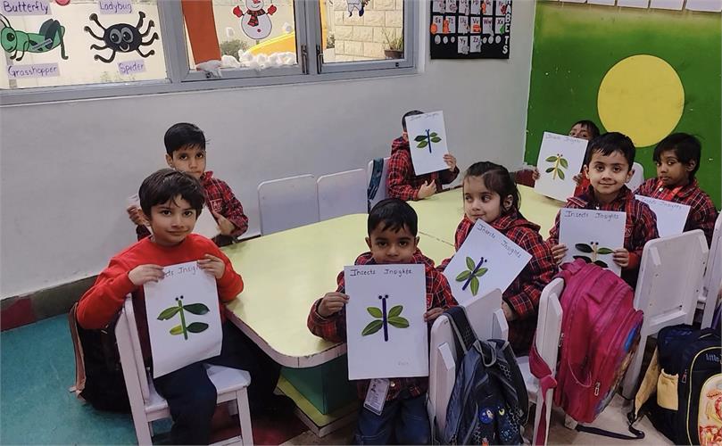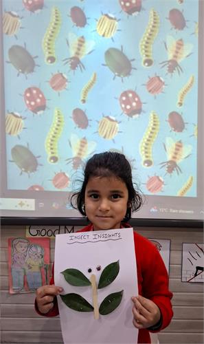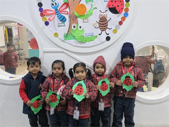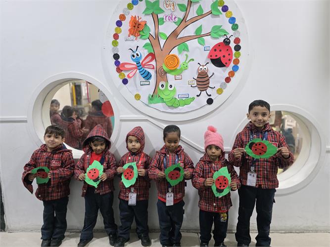 The students enthusiastically participated by identifying different insects such as butterflies, ants, bees, ladybirds, and spiders through pictures, models, and interactive discussions. As part of the activity, the students also created a dragonfly craft using leaves and pasted dots on ladybug cut-outs, which helped enhance their creativity and fine motor skills. The activity further contributed to the development of their observation skills, vocabulary, and general awareness about living beings around them.