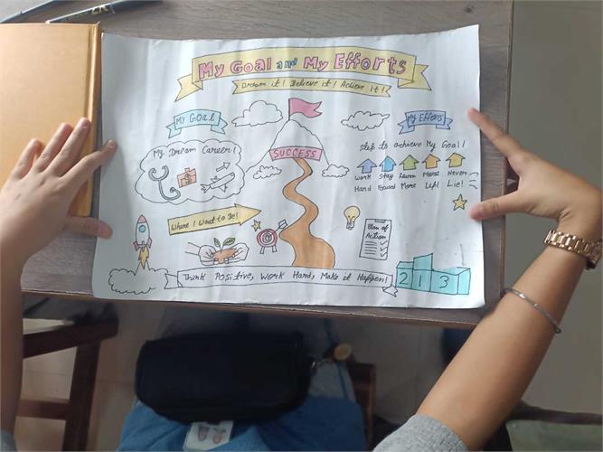 The theme “My Goals and My Efforts” aimed to inspire students to think about their ambitions and the hard work required to achieve them. Participants expressed their ideas through colorful and meaningful posters.