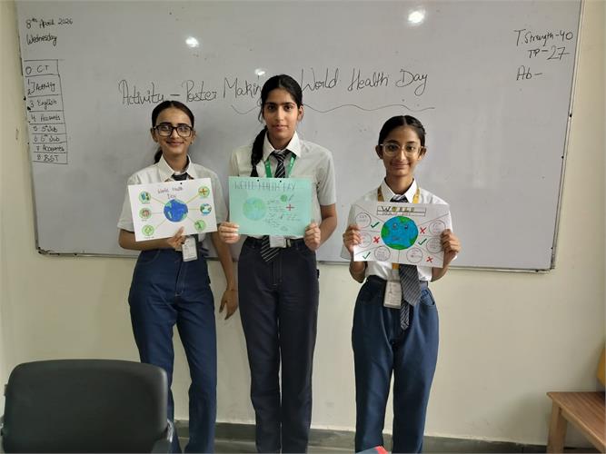 Students from different classes participated enthusiastically. The theme of the competition was “World Health Day”, and participants prepared colorful and informative posters highlighting topics such as balanced diet, regular exercise, mental well-being, hygiene, and the importance of clean surroundings. The art room was filled with creativity as students used sketches, slogans, and vibrant colors to convey their messages effectively.