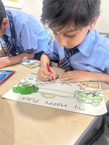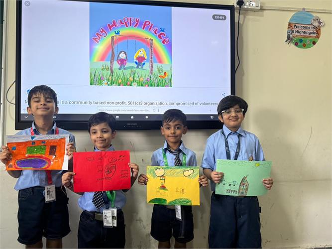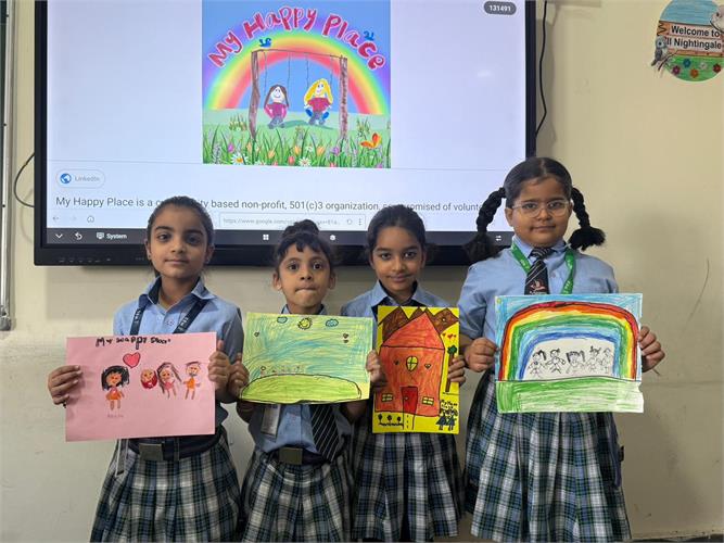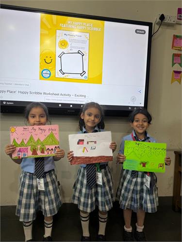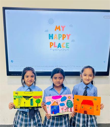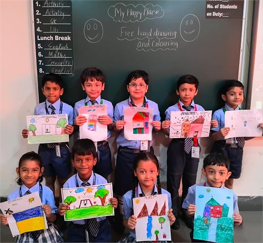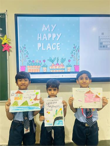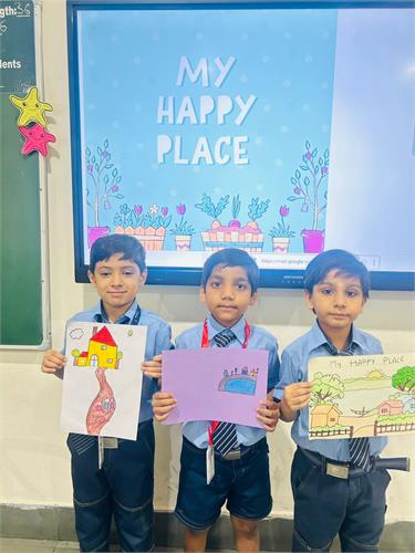 Students participated with great enthusiasm and interest. Each drawing beautifully reflected their imagination, emotions, and personal sense of happiness. It was delightful to see how every child had a unique interpretation of their happy place.