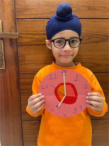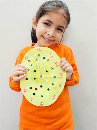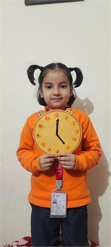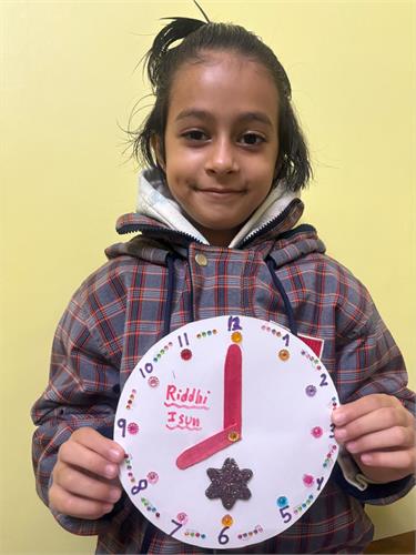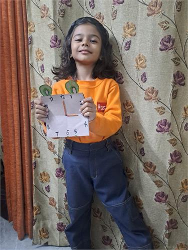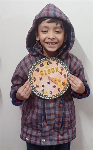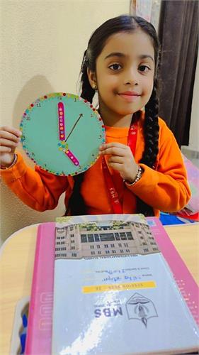 An Online Clock Making Activity was conducted for the students of Class I at MBS International School on Tuesday, 16 December 2025. The objective of the activity was to help young learners understand the concept of time through a fun, creative, and interactive online session. During the online class, students enthusiastically participated from their homes using the materials shared in advance. Under the guidance of the class facilitator, children followed step-by-step instructions to create their own clocks using colourful cut-outs, number stickers/sketch pens, popsicle sticks, and decorative materials. Despite the virtual mode, learners remained attentive and actively involved throughout the activity. They confidently showed their completed clocks on screen, displaying creativity, coordination, and excitement. The activity also helped enhance their fine motor skills, listening skills, and ability to follow instructions. Overall, the online Clock Making Activity was a successful and enriching experience, making learning joyful and meaningful even in a virtual classroom setting.