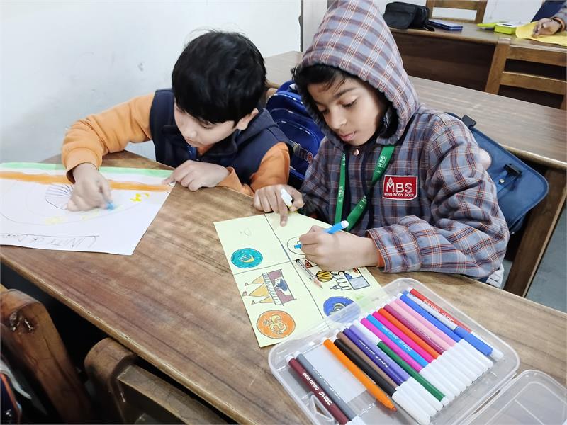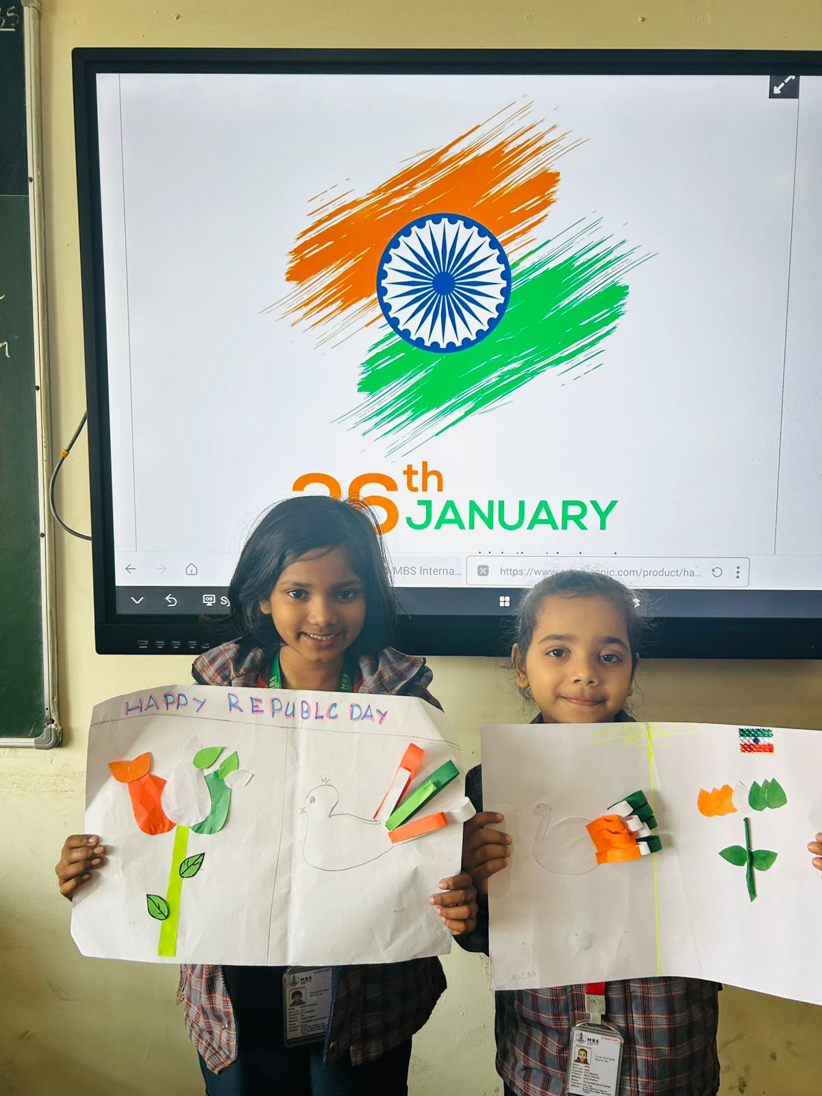 Republic Day Quiz and Craft Activity was organised for the students of Class II at M.B.S. International School on 22 January 2026. The objective of this activity was to create awareness among students about the importance of Republic Day. To help students understand national symbols like Peacock, lotus. To promote confidence, participation, and teamwork among students and to enhance their creativity, imagination, and fine motor skills through craft work. All students participated enthusiastically. The activity began with a brief explanation about Republic Day and its significance in simple language. A quiz session was conducted using oral questions related to National Flag, National Animal, National Bird and Date of Republic Day. Students were encouraged to answer confidently and participated actively. This was followed by a craft activity where students made: National symbols using paper, colours, and craft materials and Tricolour decorations. The Republic Day Quiz and Craft Activity helped students learn basic facts about Republic Day. Overall, Republic Day Quiz and Craft Activity was conducted successfully, and the students learned a lot from it.