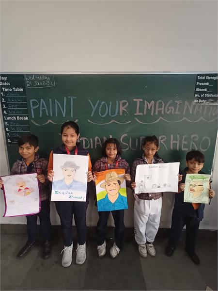 An Inter-Class Drawing and Painting Competition titled “Paint Your Imagination – Superheroes of India” was successfully conducted in our school with great enthusiasm and creativity. The event aimed to encourage students to explore their imagination, artistic skills, and knowledge of Indian heroes who inspire courage, truth, kindness, and patriotism.Each participant was asked to draw and paint on an A3 size sheet using colours, ruler, and other required art materials.