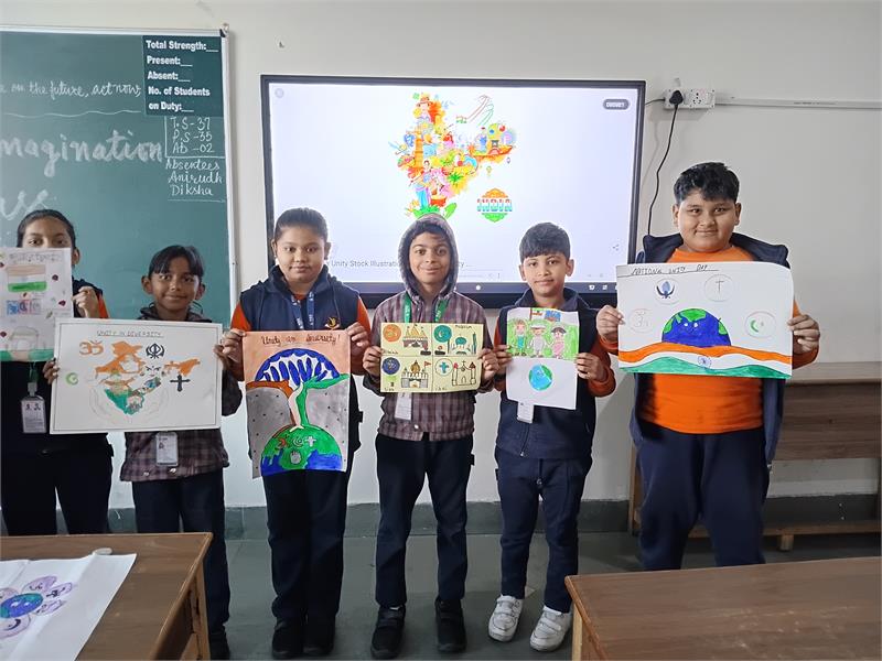 MBS International School conducted paint your imagination an Inter Class Competition on the topic ‘Unity in Diversity’ for the students of Class IV on 21 January 2026. The students highlighted the vibrant artwork that reflected culture, traditions, and heritage of different states, including handicrafts and clothing, embodying the spirit of “Unity in Diversity’’.