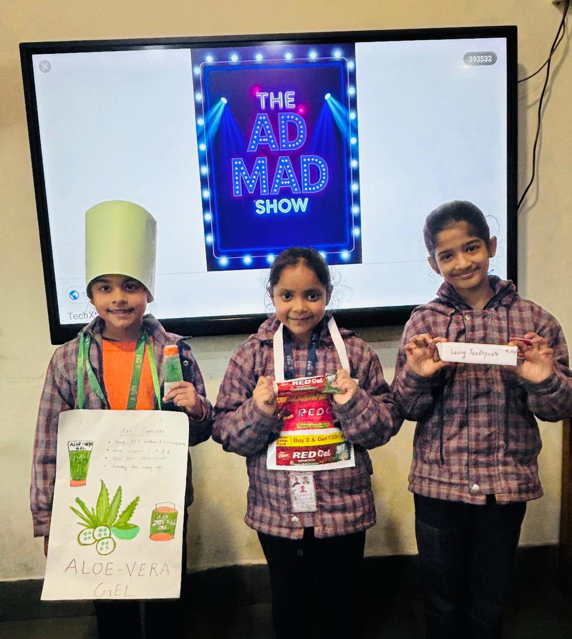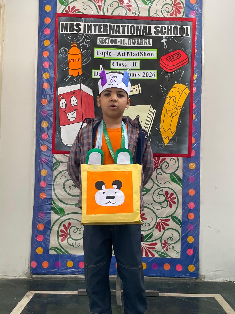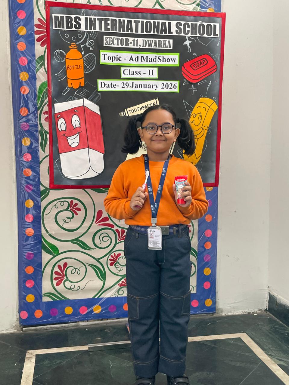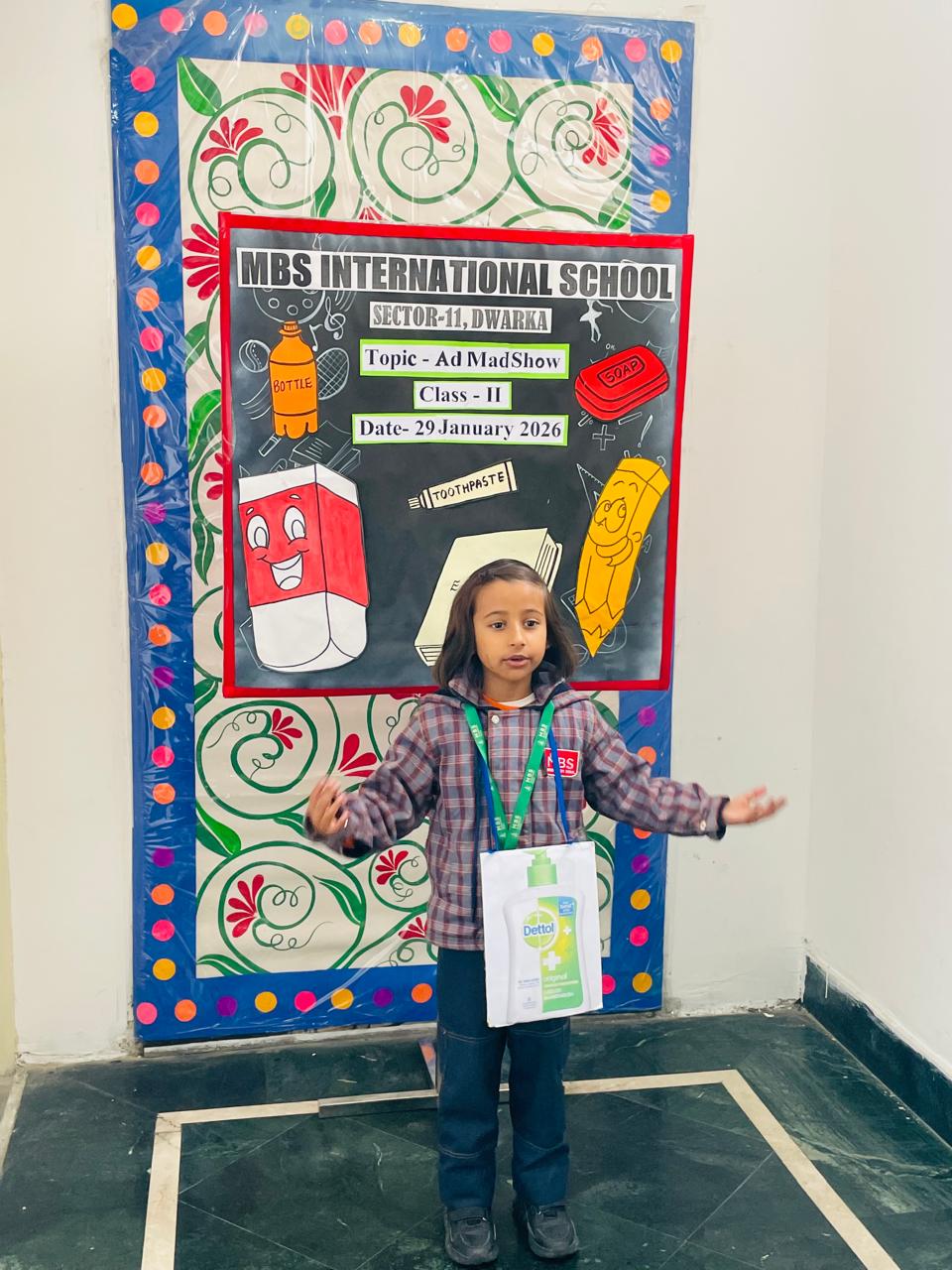 On Thursday, 29 January 2025, MBS International School hosted a lively ‘Ad Mad Show’ for the students of Class II, turning the young learners into enthusiastic little advertisers! Brimming with creativity, each student presented imaginative advertisements for a wide range of products, including delicious chocolates, fun toys, refreshing juices, and colourful stationery, all accompanied by catchy slogans.