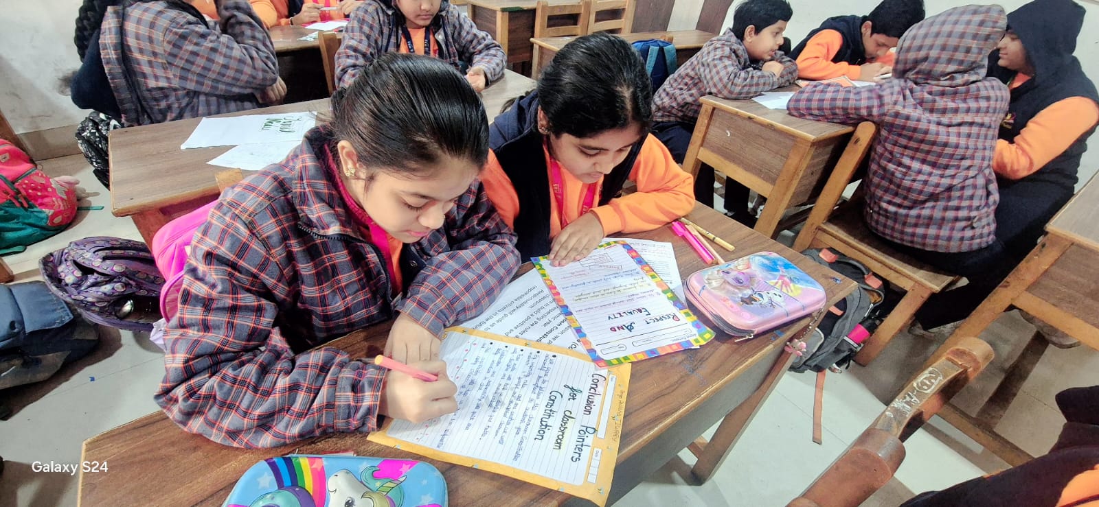 On 21 January 2026, students of Grade VII at MBS International School enthusiastically participated in a Classroom Constitution Drafting Activity. The activity aimed to introduce students to democratic values, mutual respect, and responsible citizenship through an engaging and student-driven process. The session began with students discussing the need for rules in a classroom to ensure fairness, harmony, and cooperation. They collaboratively identified key areas such as rights, duties, discipline, equality, and respectful behaviour. Students actively shared ideas, debated viewpoints, and voted on commonly agreed rules, promoting democratic decision-making. Learners then drafted a classroom constitution that included fundamental rights ofstudents, responsibilities towards peers, guidelines for conflict resolution, and commitments to inclusivity and honesty. Each clause was framed in simple language, ensuring clarity and collective acceptance. The constitution was formally adopted after unanimous approval by the class.