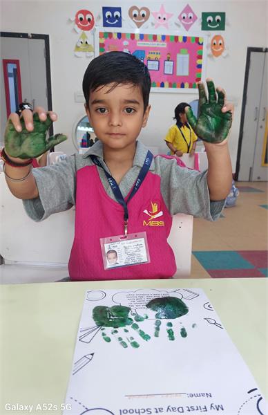 MBS International School organised a Hand Impression Activity for Class I. Little ones dipped their hands in bright colours and imprinted unique impressions on paper. Each child wrote one quality they possess, proudly showcasing kindness, confidence, and cheerfulness. The classrooms came alive with vibrant displays of individuality and creativity. Teachers guided conversations on self-love, confidence, and recognizing unique strength. The activity nurtured fine motor skills, self-awareness, and emotional expression.