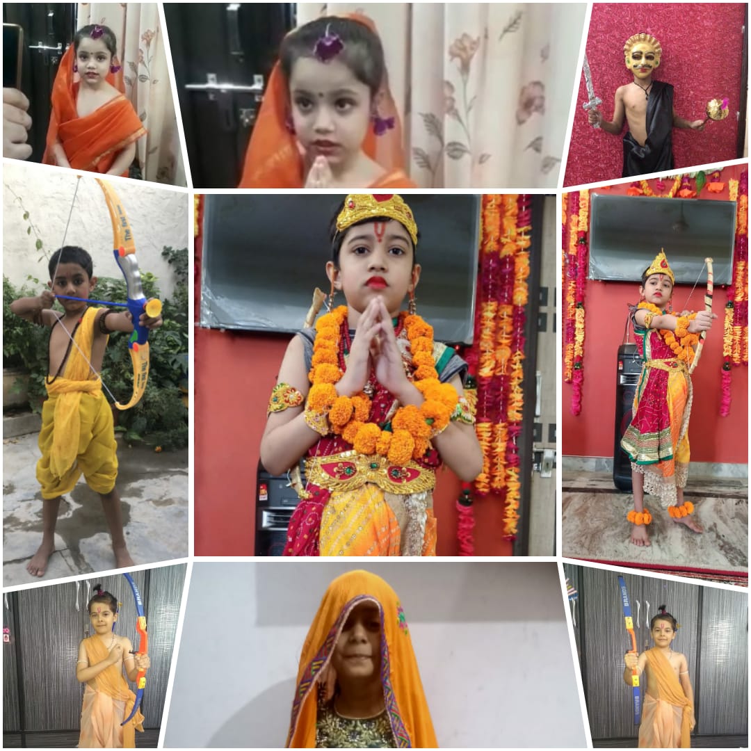 Dussehra, the festival is the celebration of victory of good over evil. It was celebrated online with the students of preschool & preprimary with a lot of zeal and fervour. Children were dresses up in different avtar from Ramayana. The little Rama, Sita, Hanuman, Shabri and Ravana won the hearts of everyone with their performance. The confidence and zeal with which children performed made the whole celebration special. Teachers explained the real meaning of this festival through a short video which was followed by a devotional bhajan. The whole celebration ended with the message that Dusshera festival inspires us to follow the path of Dharma which is righteousness. It reminds us that in the end good always wins. Children learnt values of honesty, respect and obedience. Overall the celebration was appreciated and enjoyed by all.