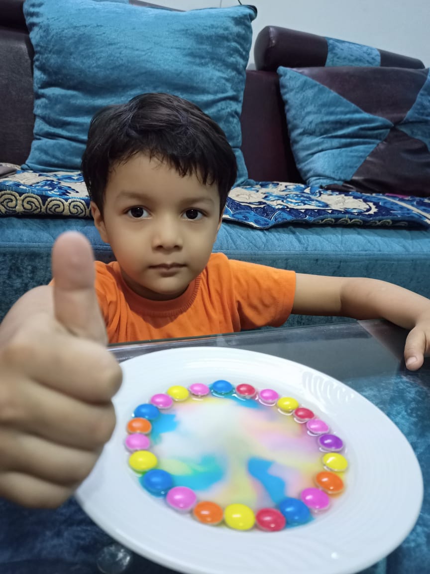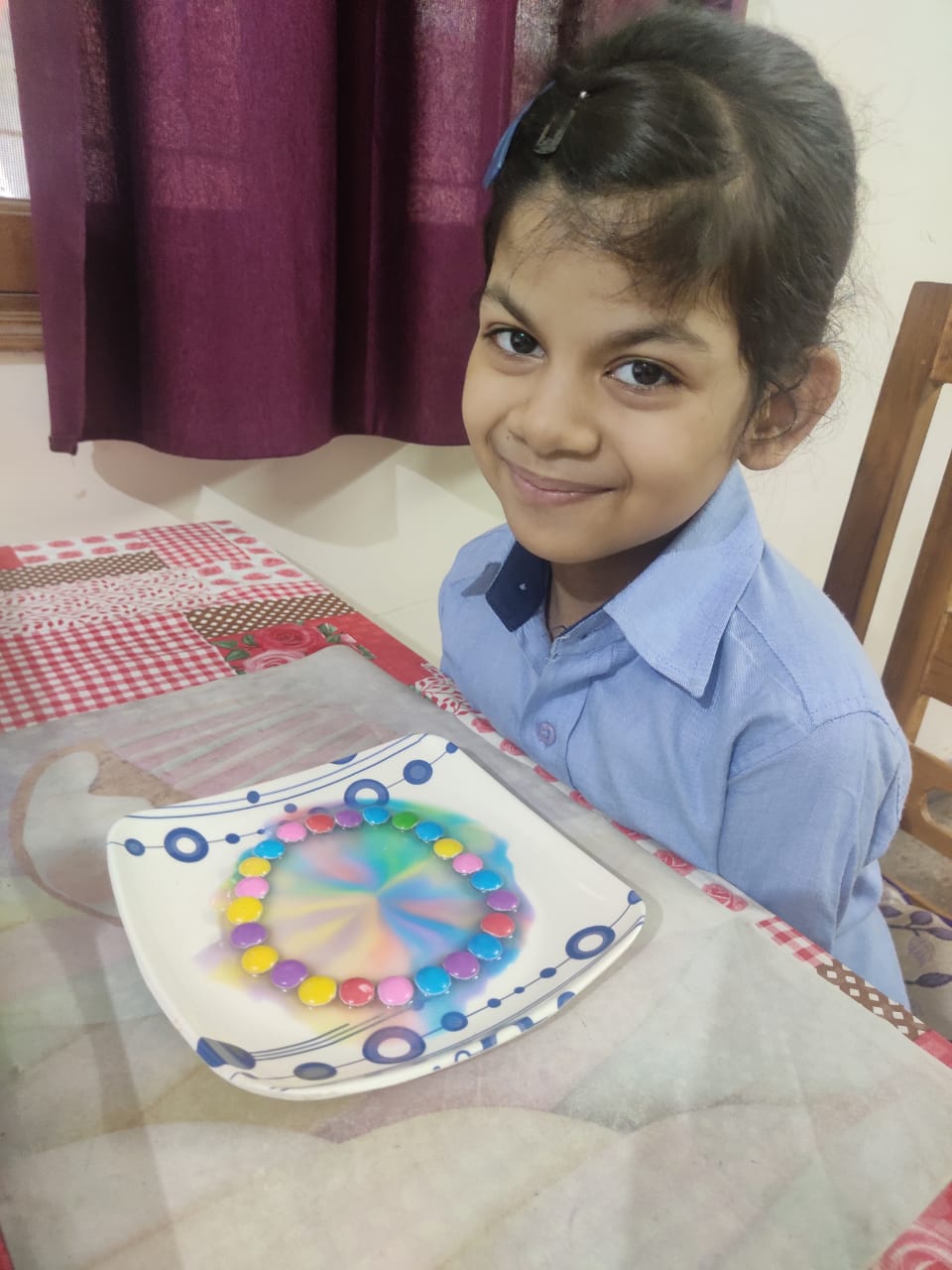 They were fascinated to see the flashy rainbow art created by them using simple candies and water. The experiment gave children a wonderful opportunity to learn about predictions, thereby developing general science awareness.