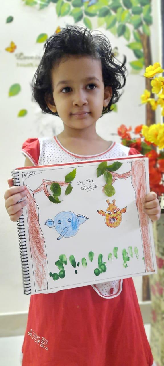 Children experimented with different colours of their choice. They exhibited great enthusiasm in adding features to their pictures. Some made the picture of an elephant while some made an ice cream. Whatever was made they enjoyed each moment with glee.