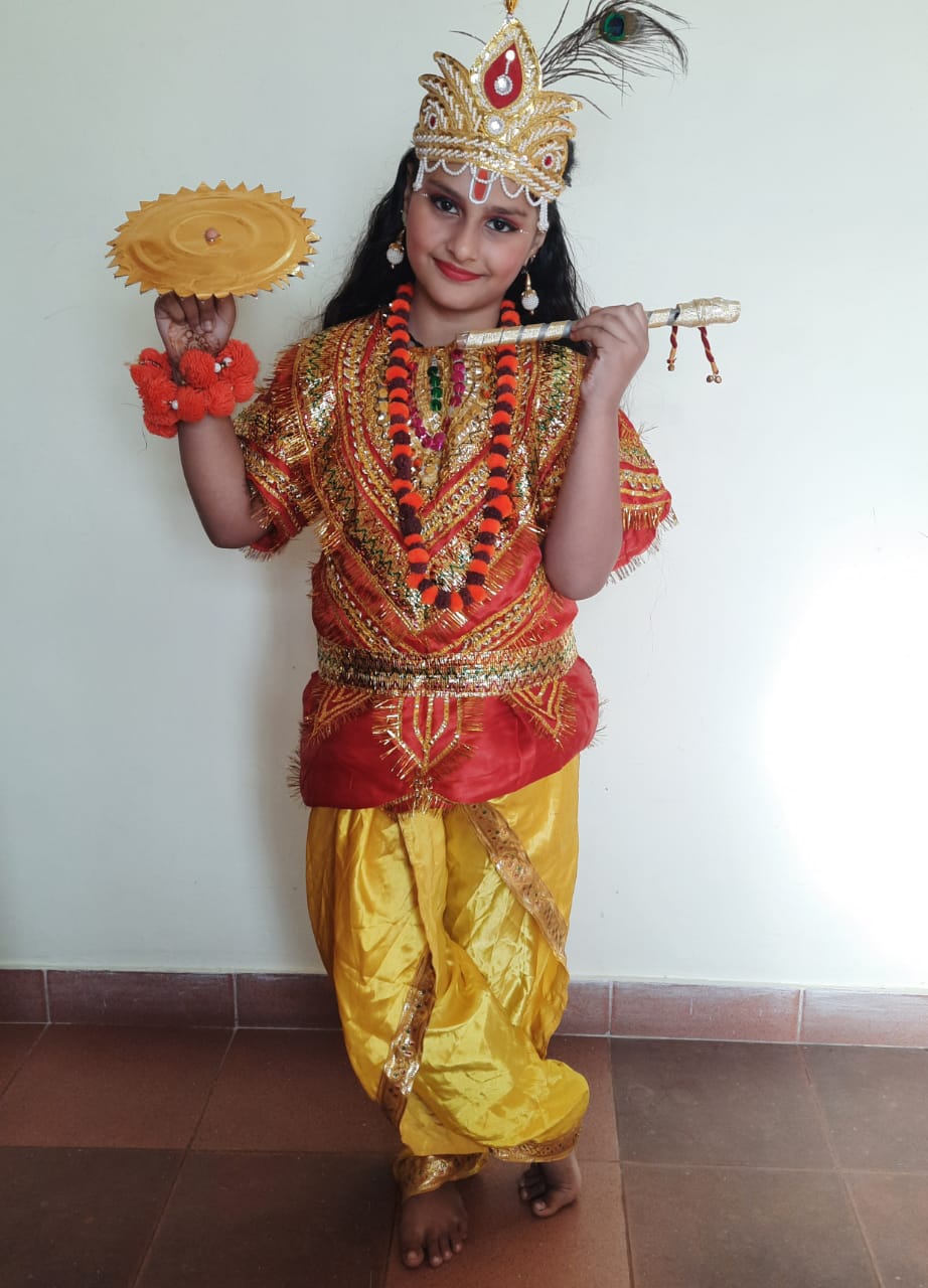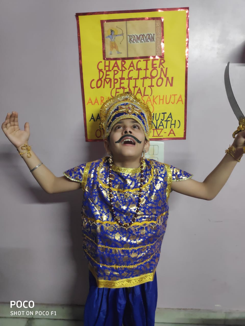 A virtual Competition was conducted for the students of Grade V on Monday, 2nd November 2020, in which the students dressed as Mythological characters enacted their role.The first round of the Character Depiction was conducted amongst all the students of Grade IV & V, in their respective virtual classrooms on November 2, 2020.The final round took place on Novmber 7, 2020.