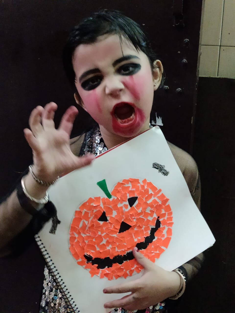 Everyone loves dressing up on Halloween!, especially the little ones. The costumes and spooky make up make the Halloween celebration more fun & interesting. MBS International School strongly believes in providing a holistic platform to learn and grow. And these different events and celebration makes the learning process conducive. Children of preprimary classes participated with full enthusiasm in Halloween Celebration. They were dressed up in fancy dresses and enjoyed showing off their spooky poses in the online class. To create more memories of the celebration children were involved in creative art work where they made the symbolic pumpkin. Overall it was a fun filled day.