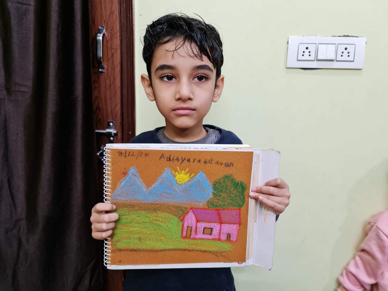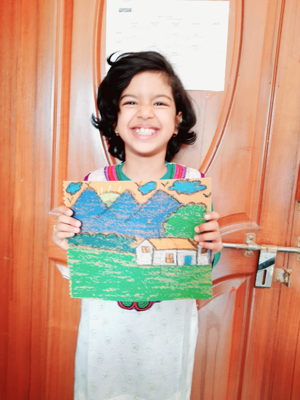 This activity was organized to explore and encourage creativity in children and offer them a platform to show their skill in drawing and coloring. The students were instructed to make a beautiful scenery on sand paper using oil pastels. Oil pastels can be a wonderful medium to bridge painting and drawing techniques.