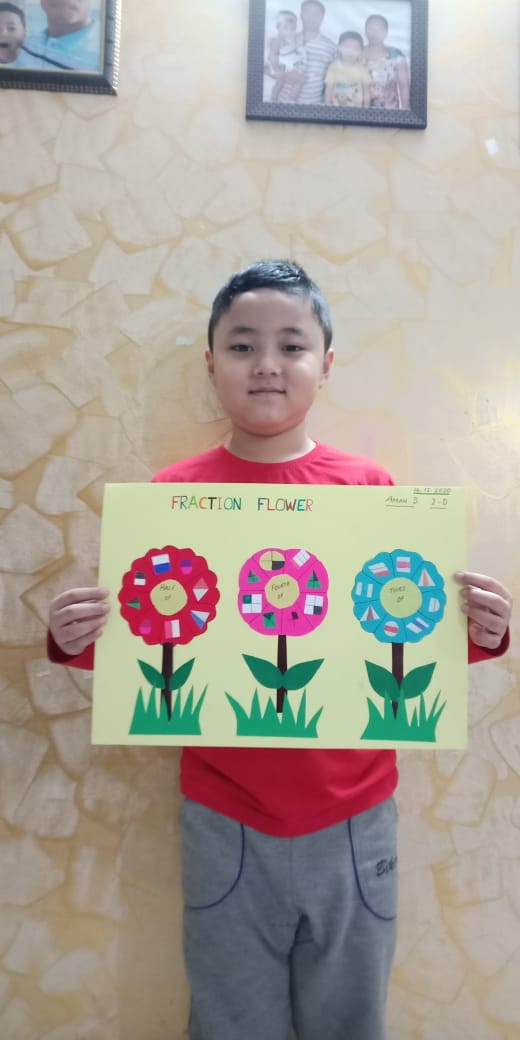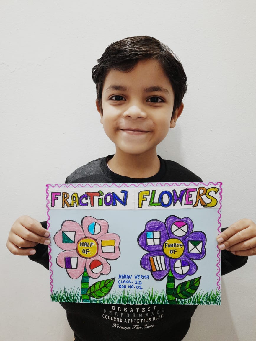 To teach students the basic concepts in a simple and playful manner Fraction Flowers activity was conducted for the students of Grade- II on December 16, 2020. The aim was to promote awareness, appreciation and understanding of the subject through this activity. The activity was thoroughly enjoyed by the students. It was a pleasure to watch the students making fraction flowers with such elan. Every child presented a unique piece of art. It was a fun activity which inspired them to use their imagination and creativity. The activity proved to be a great learning experience for the students and gave them a platform to explore their hidden talents.