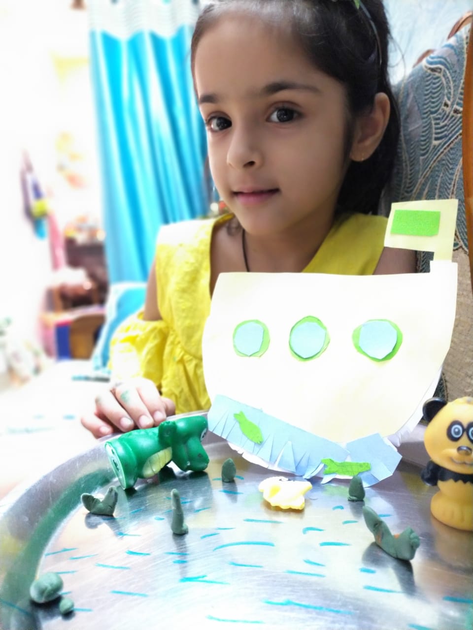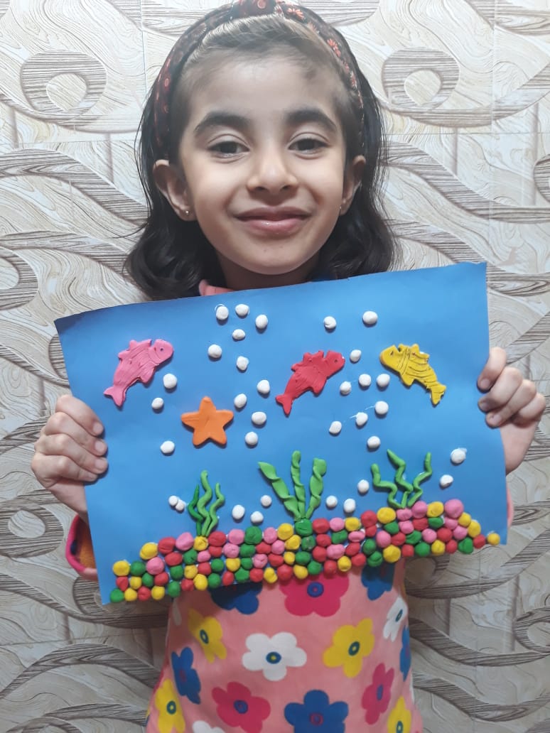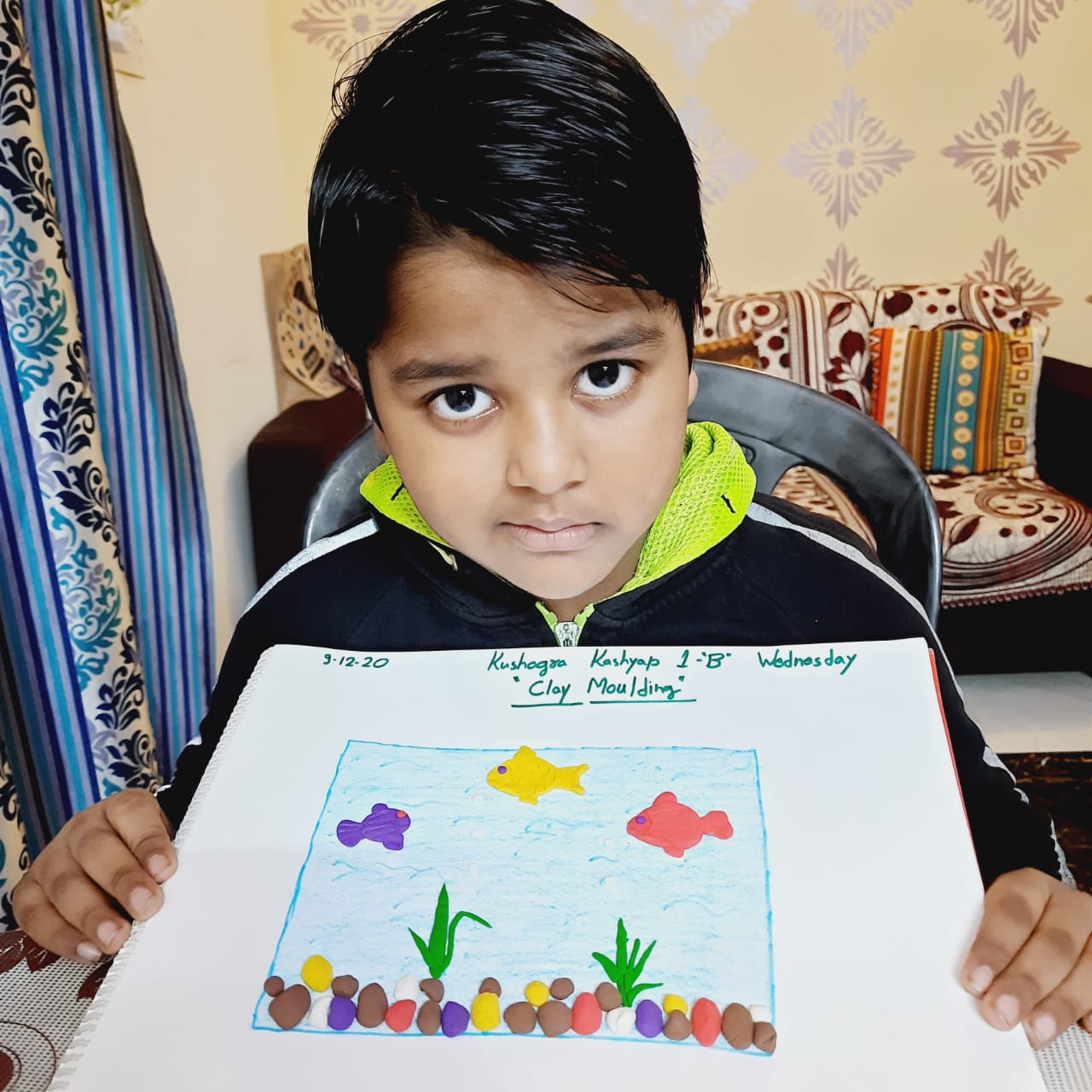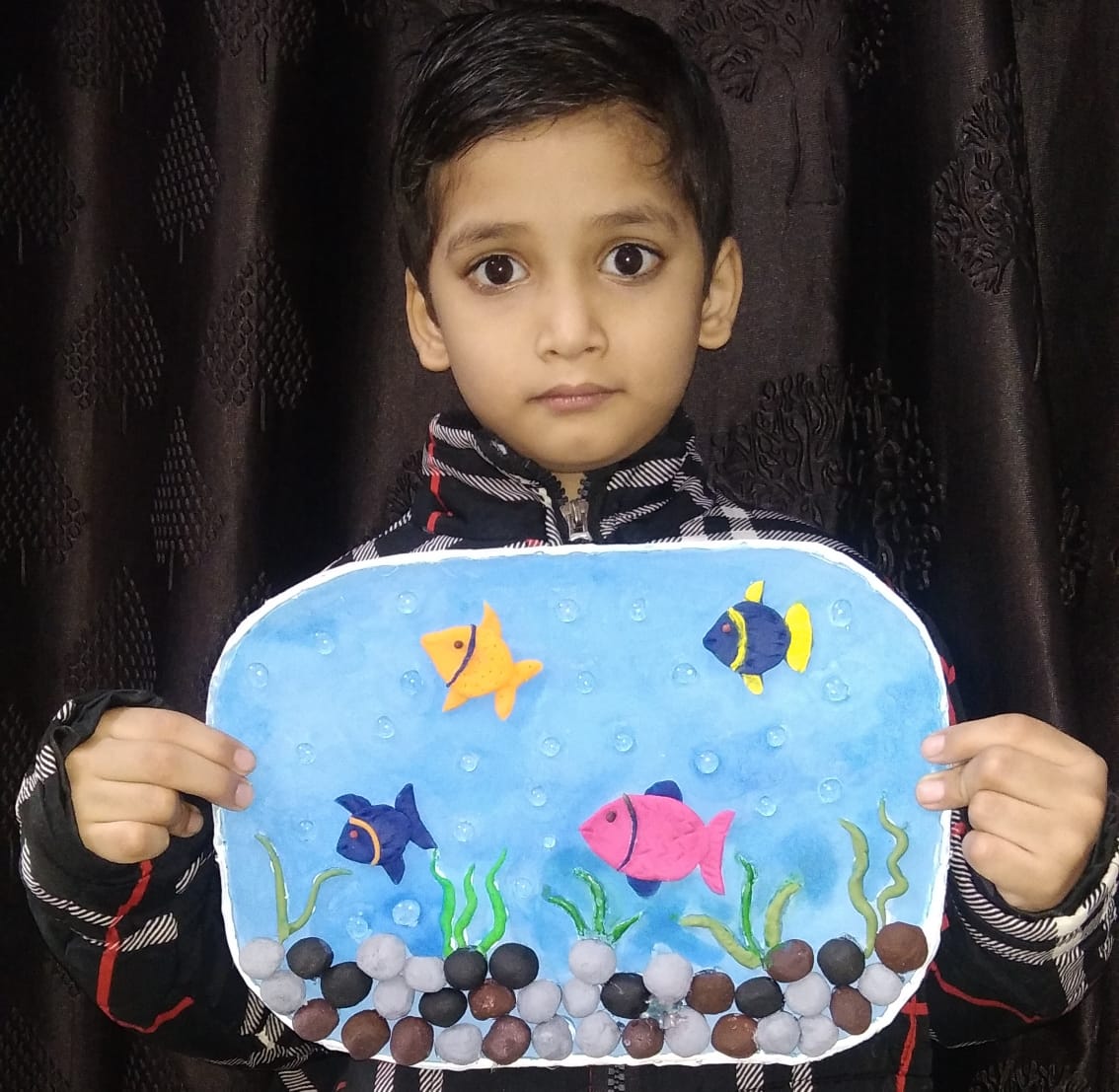 The students were given a theme “Fish Aquarium”. They were asked to make different elements of the aquarium using different coloured clay. The kids pounded, squeezed, rolled and blended clay to make amazing creations like fish, stones, water plants etc. Playing and crafting with clay being favourite activity of the kids, they learnt various techniques of moulding. With the guidance of the teachers the children came up with amazing finished piece of art. It developed a sense of accomplishment among the children.