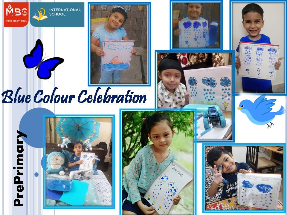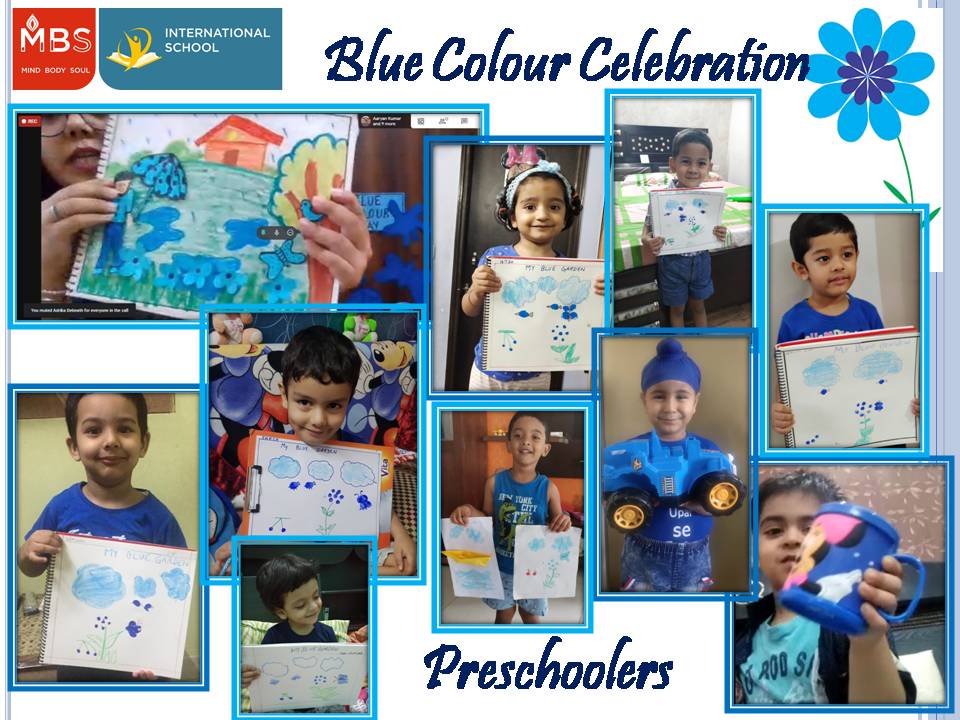 Life is an enjoyable journey and colours enhance the celebration. Hence, at MBS International School, children were involved in the celebration of life through the fascinating world of colour and this time the focus was on colour ‘Blue’. Children of preprimary classes were are excited & dressed up in the vibrant shade of blue. An array of blue coloured objects like umbrella, ball, cloud, flowers etc. were shown in the online class, providing the students opportunities to have a clear sense of the colour and its importance. They were also involved in making a blue garden in their sketch book with finger printing and colouring. Through our child-centric approach which ensures that learning is always fun through play way methodologies.