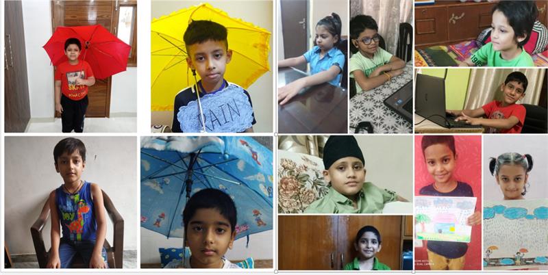Rainy Day is always a fun time for the kids. To celebrate Pitter Patter of rain drops, the pre-primary students of MBS International School were all set with their raincoats & umbrellas to splash & revel in the virtual rain. Children had their own experiences to share about how playing in rain is the most favourite activity during this season. They indulged in making their own 3D umbrella and preschoolers created their own collage of raincoat, umbrella & gumboots.