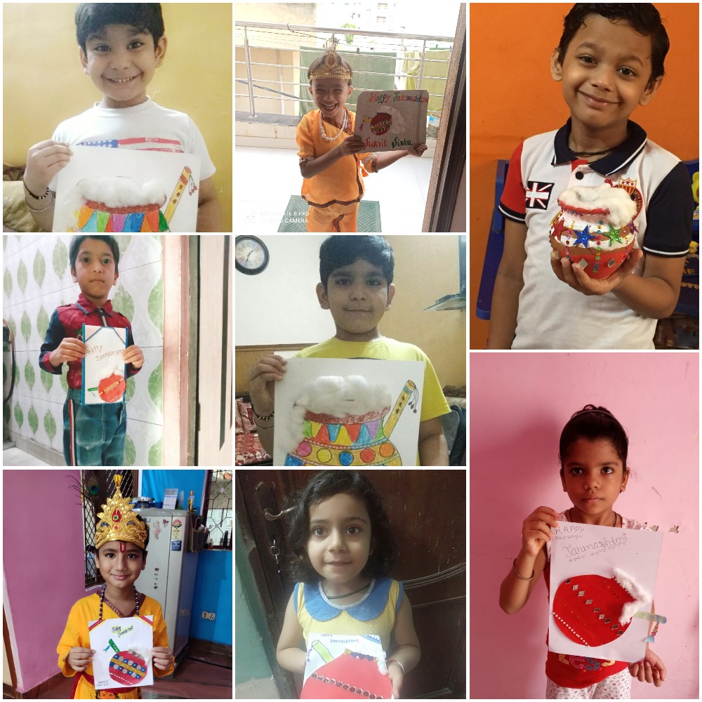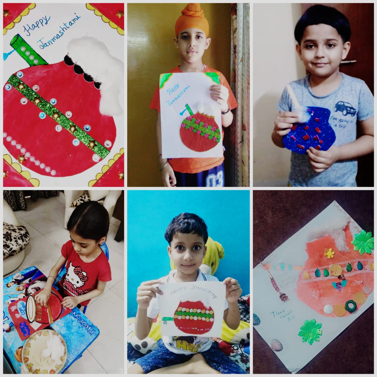 Janmashtami is celebrated as the birthday of Lord Krishna, one of the most powerful and famous reincarnations of Lord Vishnu. According to the Hindu calendar, this festival is celebrated on the Ashtami of Krishna Paksh or the 8th day of the dark fortnight in the month of Bhadon. This day indicated the beginning of hope in the older times; hope, that the malicious rule of Kansa would soon end. To seek the blessings of Lord Krishna, Janmashtmi- Pot Decoration was organized for the students of Grade –I and II by MBS International School on Tuesday, August 11, 2020 wherein the school students enthusiastically participated and wondrously showcased their talent and creativity.Activity was conducted in order to improve presentation skills and to develop the understanding of Indian traditions.The students actively participated in the activity and wondrously showcased their talent. The enthusiasm among the participants was worth watching.