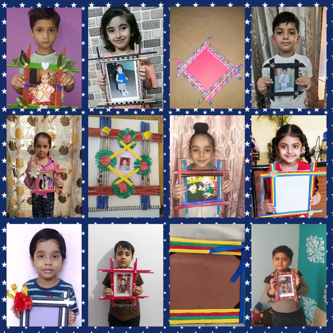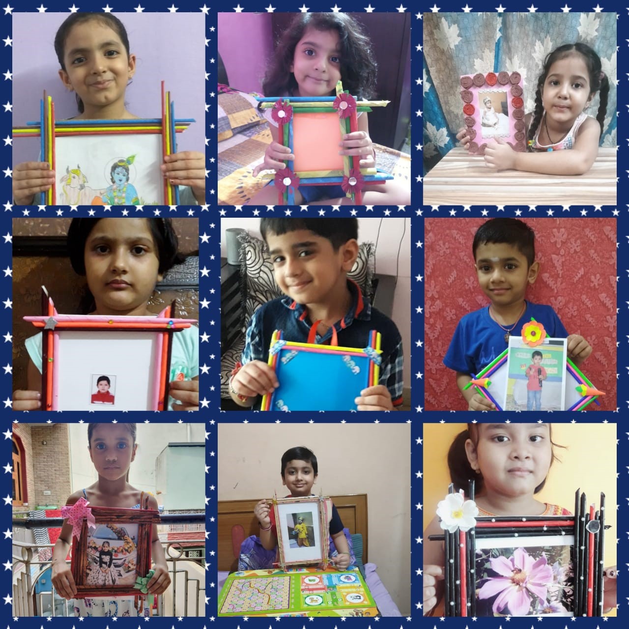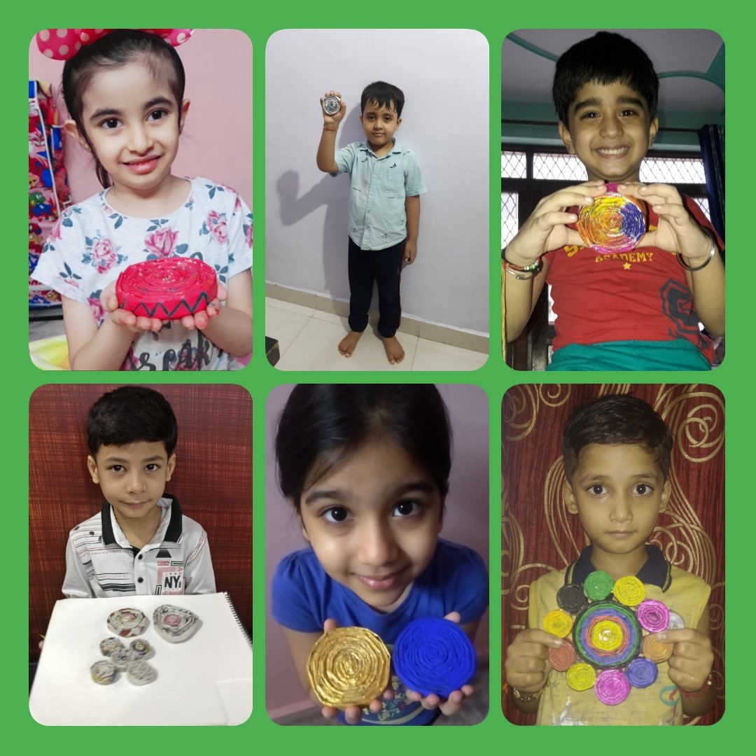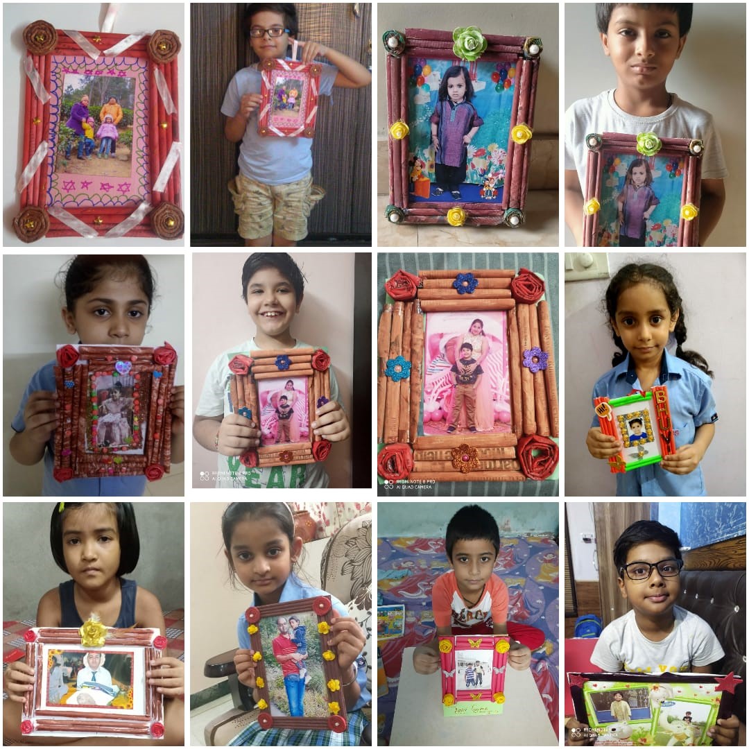 With the help of some old newspapers, Grade -I students made coasters and Grade -II students made Photo Frames. They applied painting and rolling process and created beautiful craft work. This activity was intended to reinforce the message of recycle and reuse. It fostered innovative application and given them a joyful experience of making something new out of waste material.