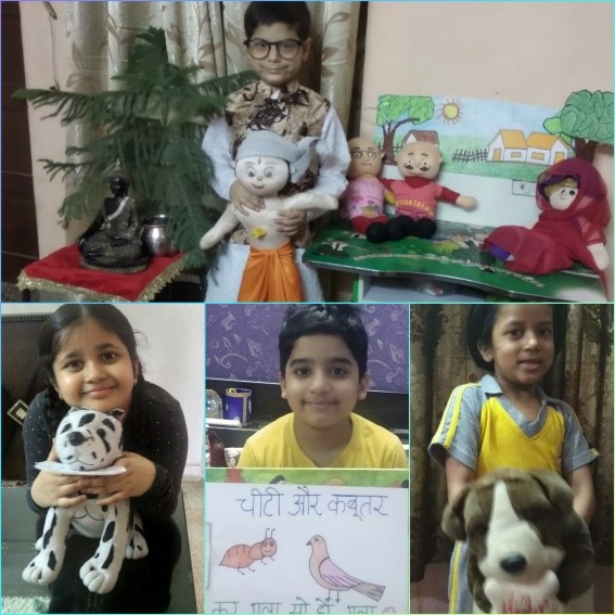 The students were asked to make puppets and narrate a story using the puppets effectively. This ambitious activity helped the students develop creativity and oratory skills. The students presented their immaculate work by making colourful and meaningful puppets by using interesting materials like coloured paper, ice cream sticks, cloth, recycled medium etc. to create stick and hand puppets. The activity proved to be a true learning experience for all the participants . The amusement and laughter of the students was the proof of the joy and fun they experienced during the activity.