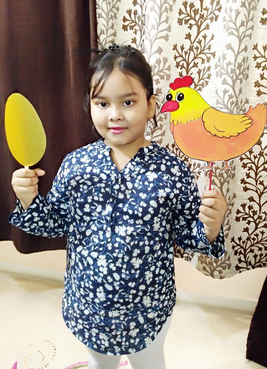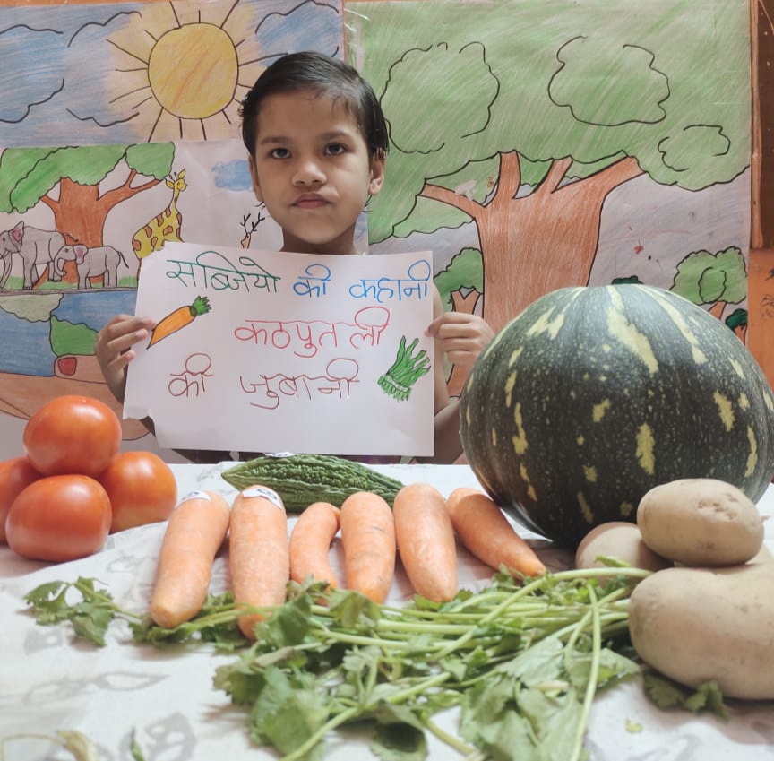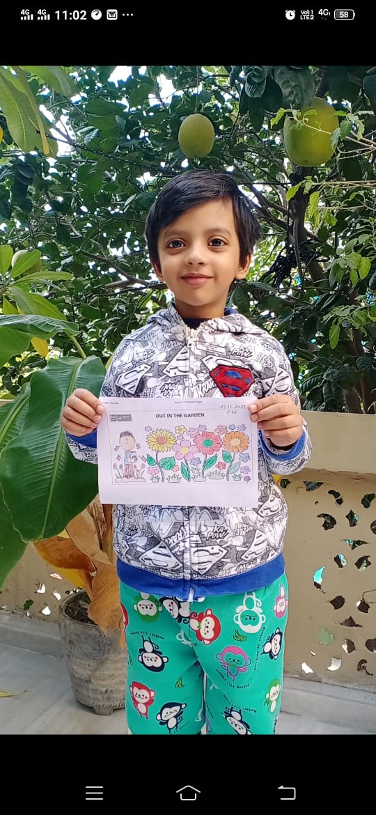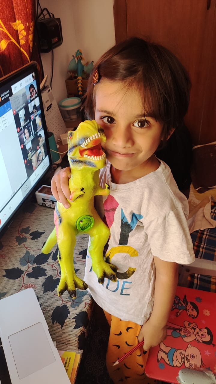 Children expressed themselves on virtual platform and freely shared their thoughts. They shared several things about them like hobbies, favourite cartoon, favourite fruit, favourite colour, favourite vegetable etc. They used props accordingly. Some made a scrapbook to show their favourite things. Some used real life objects whereas some used cut outs of their favourite things. The activity brought everyone closer. Teacher also came to know about her students. It helped the introvert and shy students to take initiative and speak few lines on themselves.