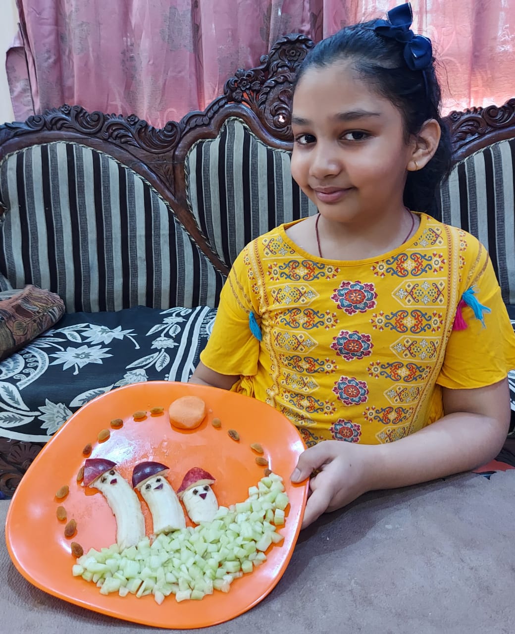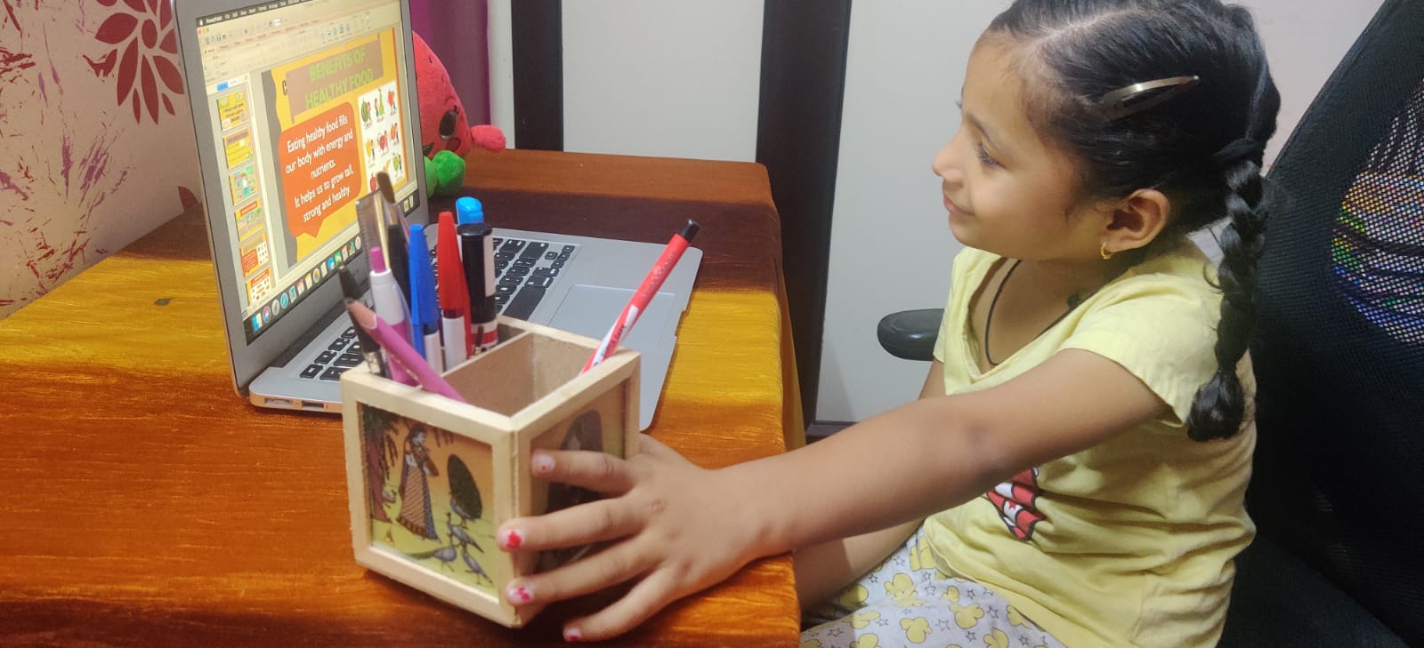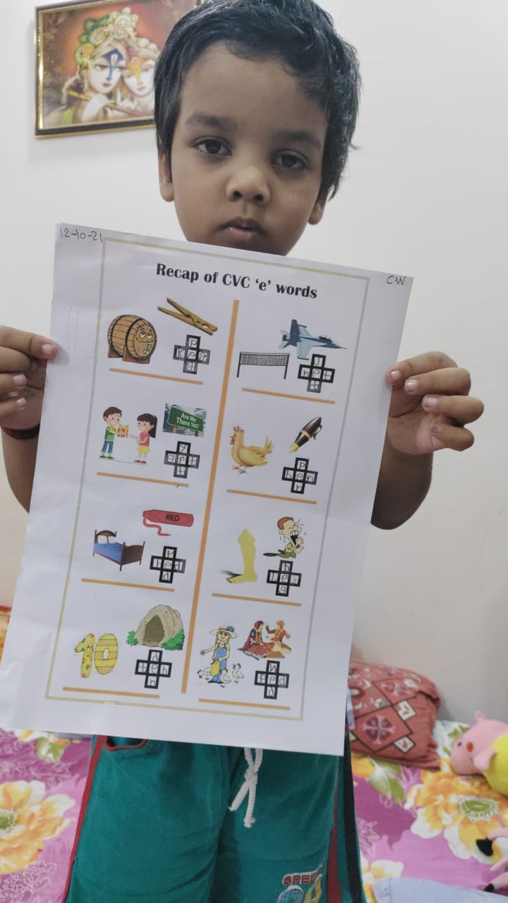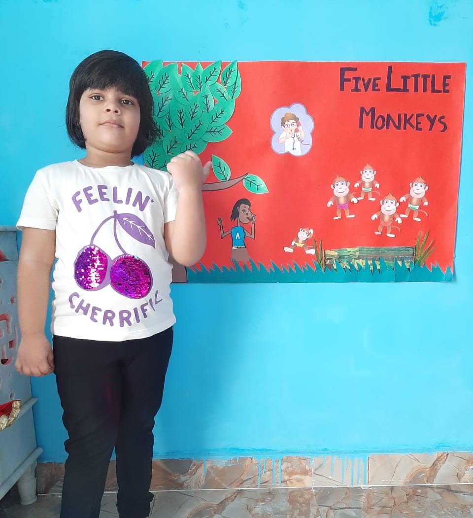 Children expressed themselves on virtual platform and freely shared their thoughts. They shared several things about them like hobbies, favourite cartoon, favourite fruit, favourite colour, favourite vegetable etc. They used props accordingly. Some made a scrapbook to show their favourite things. Some used real life objects whereas some used cut outs of their favourite things. The activity brought everyone closer. Teacher also came to know about her students. It helped the introvert and shy students to take initiative and speak few lines on themselves.