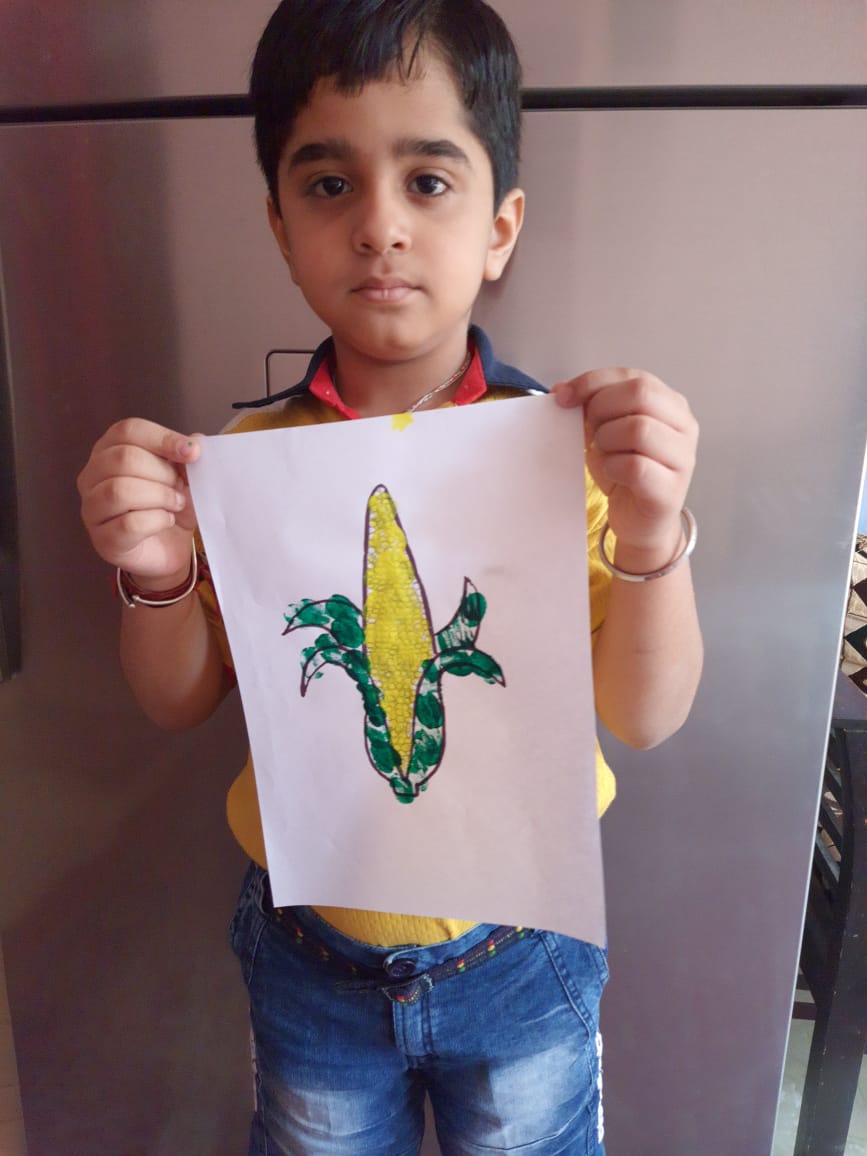 Thumb Printing Activity not only includes simply using colours and fingers and creating a piece of art but it also enhances the fine motor skills of the children. The child learns to use their senses, explore colours, explore process and outcomes, and create aesthetically pleasing works and experiences. This artsy endeavour aimed to add fun and excitement in the daily routine of the kids. Children drew a picture of Corn as tribute to farmers for a good harvest and coloured it using thumb printing. Teachers appreciated and acknowledged the work done by the students. To discover the undiscovered talents, Art and craft activities are regularly organized by our school. It is about encouraging, nurturing and showcasing every child's natural creative flair.