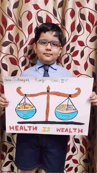 The objective of the competition was to ignite the fire of imagination and creativity in the students. The theme of the activity was ‘Health is Wealth’. The young learners displayed their artistic skills through an array of posters. The students participated with immense zeal and enthusiasm.