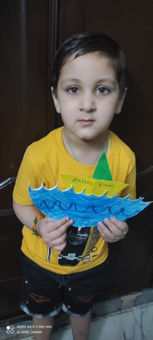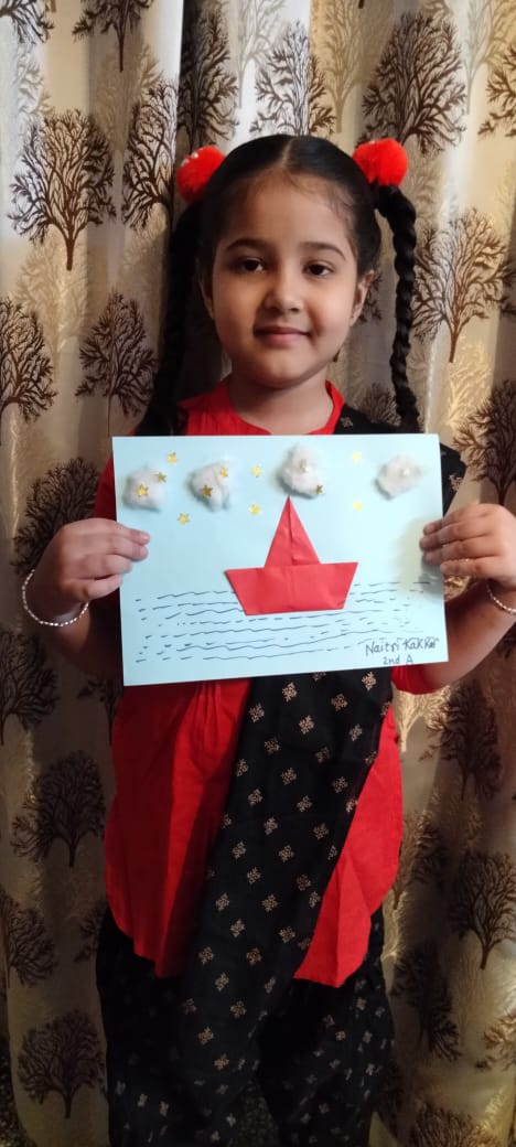 Children were amazed to see transformation of a flat sheet square of paper into a finished sculpture of boat. Budding stars created unique and exclusive shapes and structures to showcase their finesse in paper craft. They made origami boat and displayed them with great pleasure and gratification. This activity triggered their imagination and enhanced their creative skills.