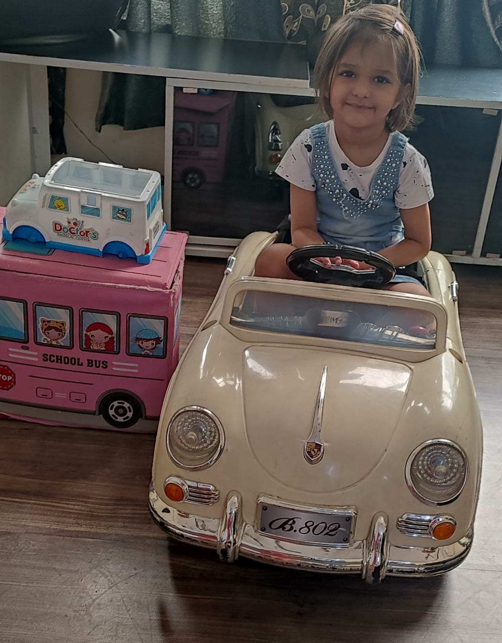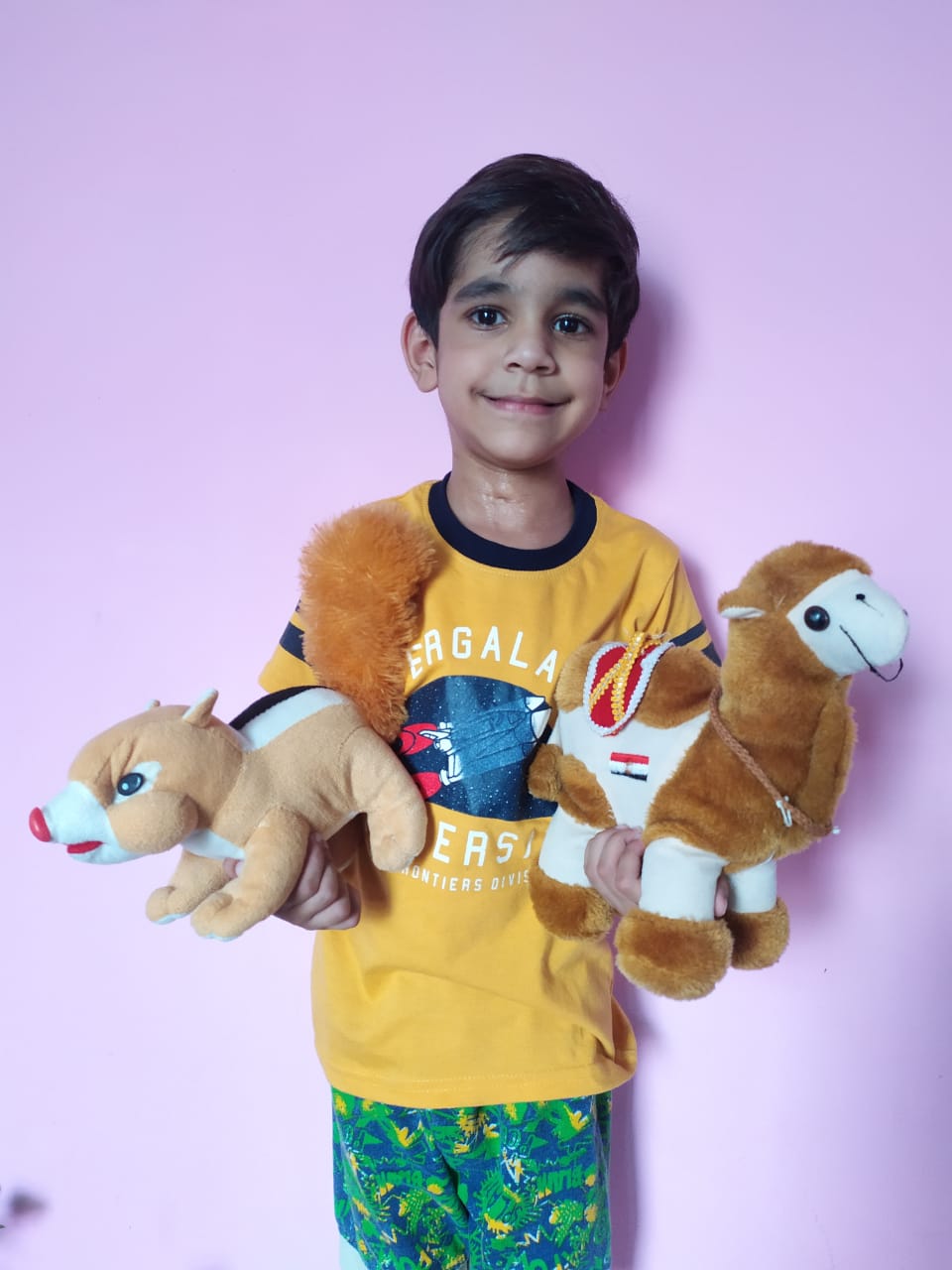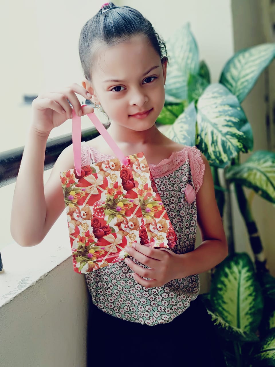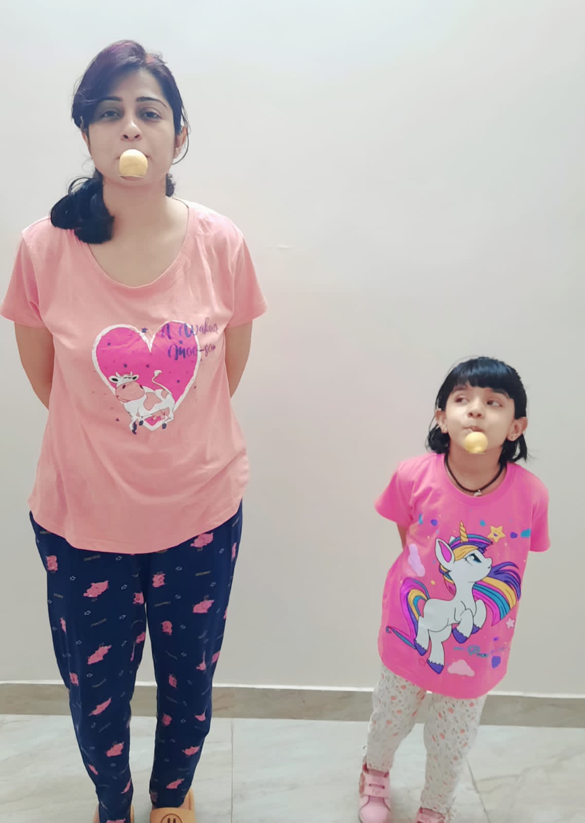 The young ones came dressed in pink colour, and brought pink-coloured toys and showed their pink-coloured toys.