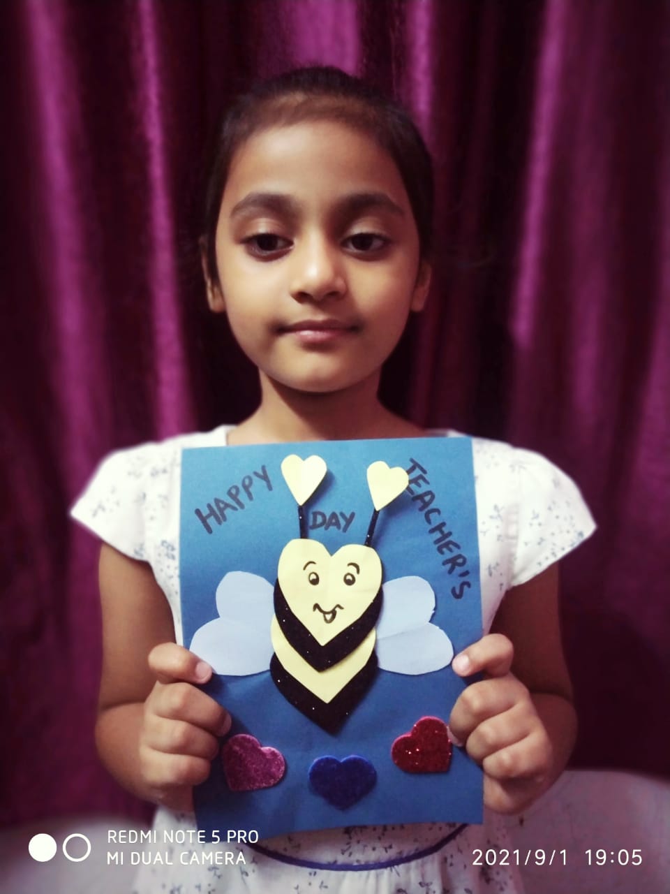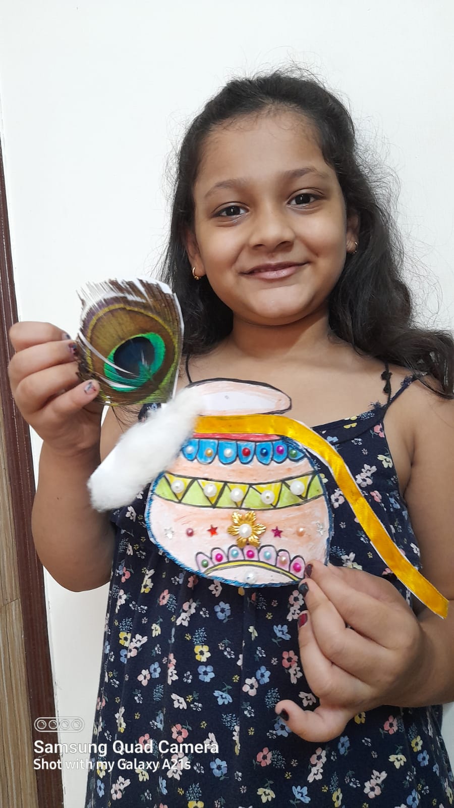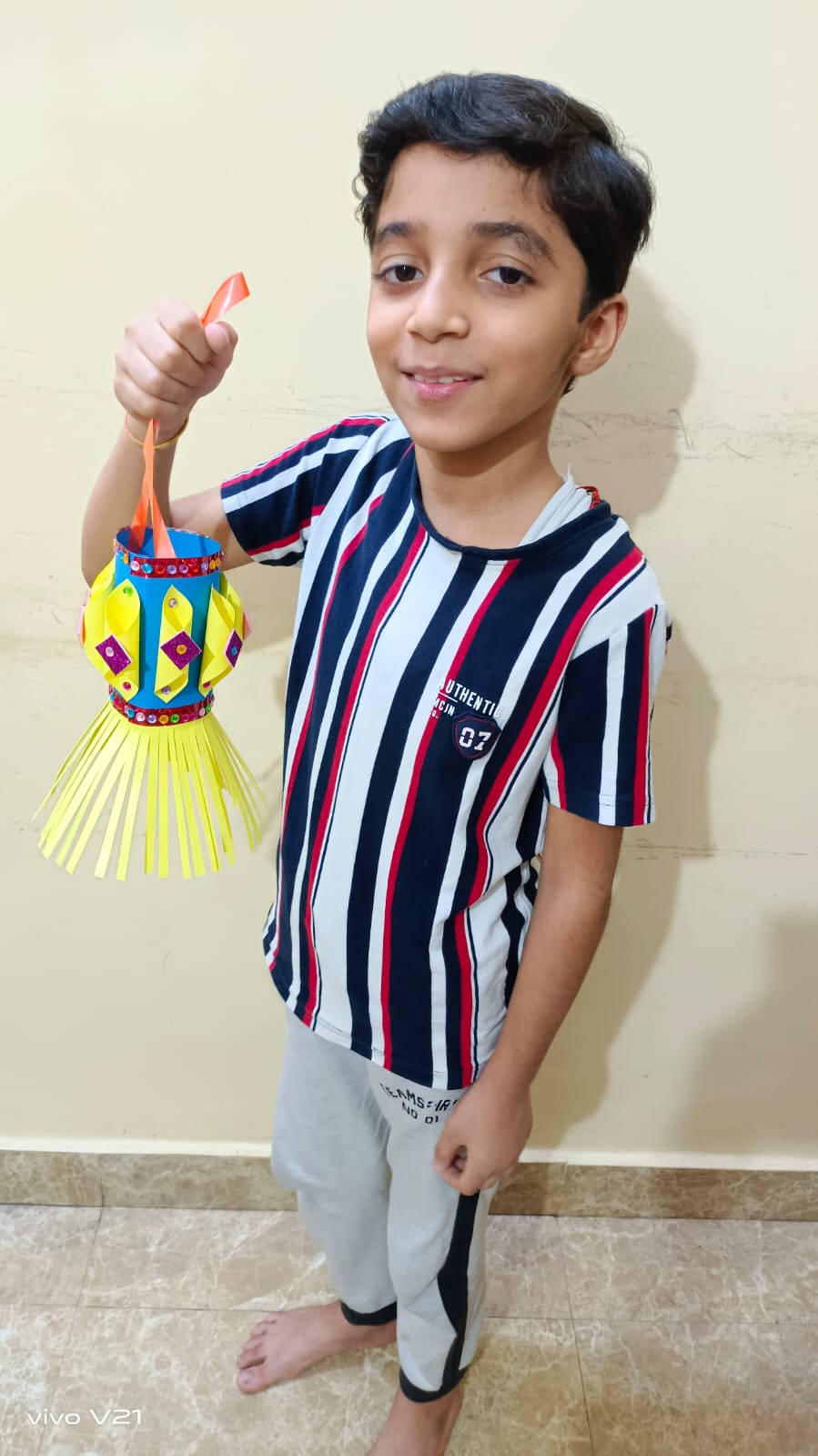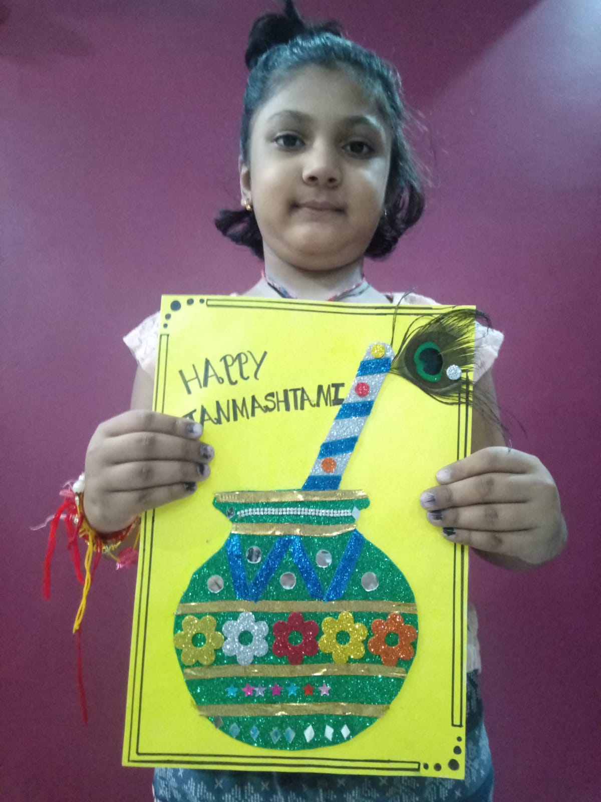 With the origami boat they created the Night Sea Scenery. They made the scene with the help of stars, cotton & white bindi.