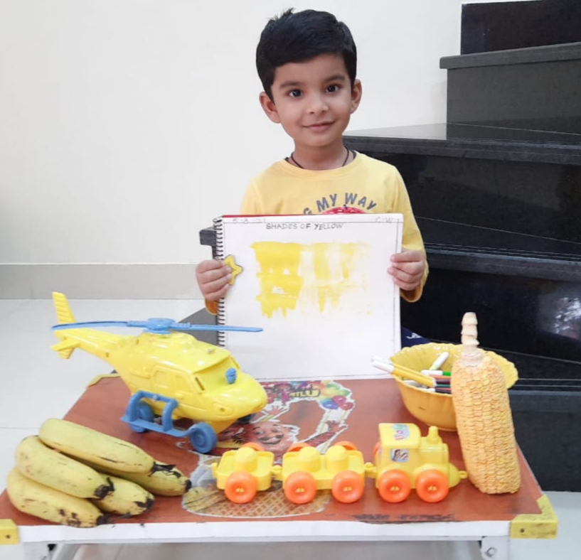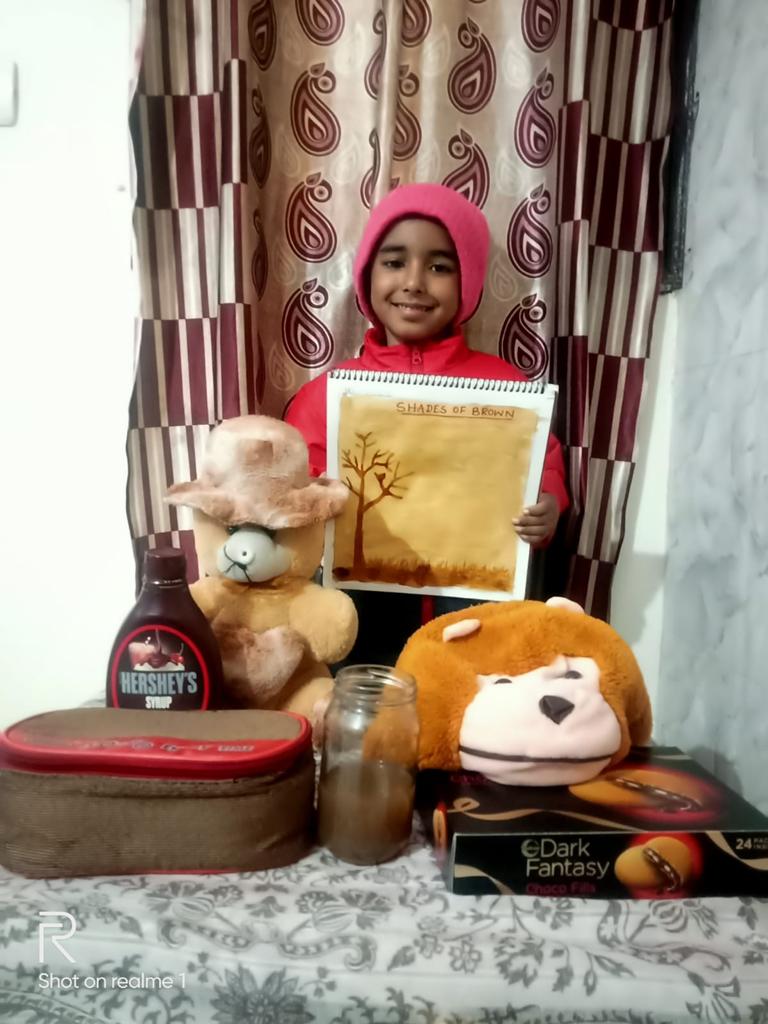 The teacher showed a presentation on brown colour. Children were also shown real objects of the same colour. Children were excited to learn that brown colour could be obtained by mixing red, yellow and green colours.