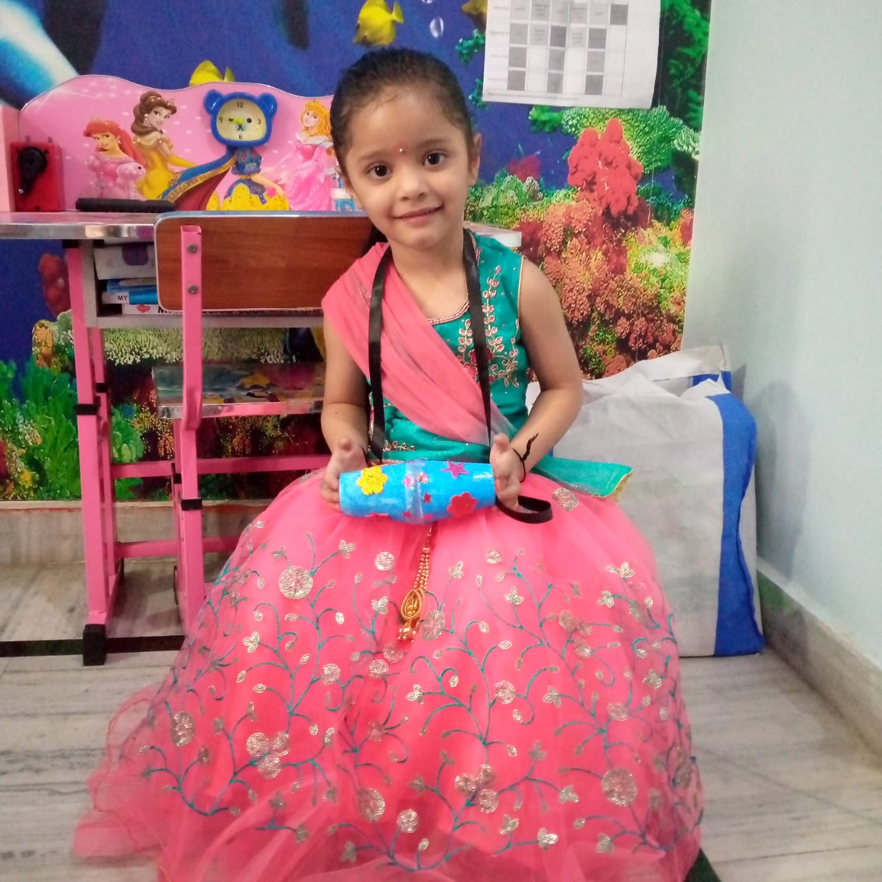 The aim of the activity was to make the young ones identify pink colour in the objects they see around them. Children were explained that pink colour signifies love, beauty and kindness.