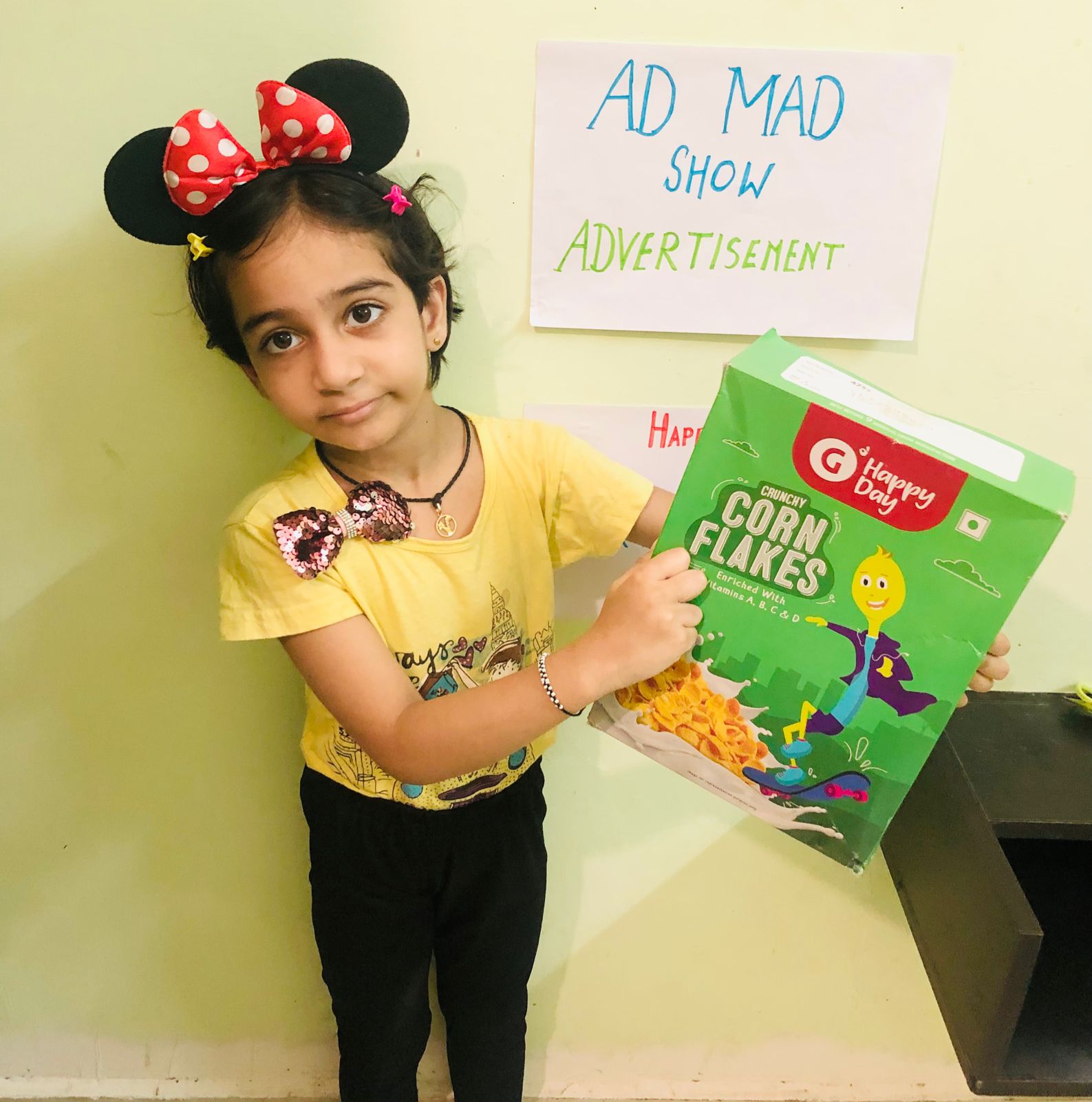 Ad Mad Show for Grade III-V was organised on 12 and 16 April, 2021. The competition was conducted in two rounds. First, the preliminary round was on12th April where the students of each class showcased their talent by singing advertisement jingles. Students showed various products we consume in our daily life like milk, face creams, biscuits, etc.