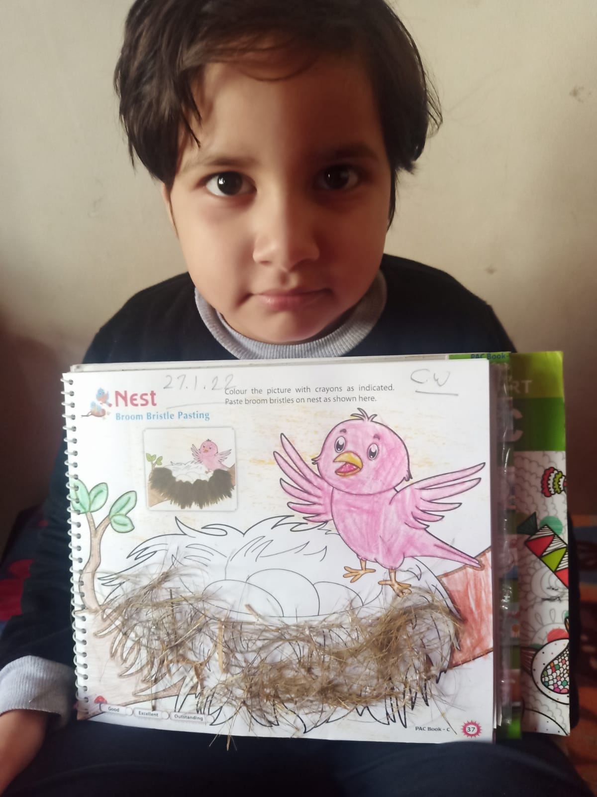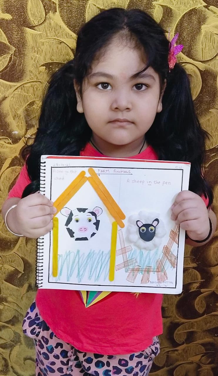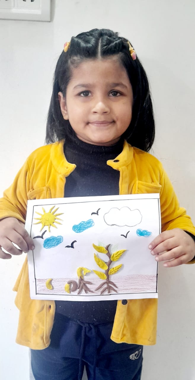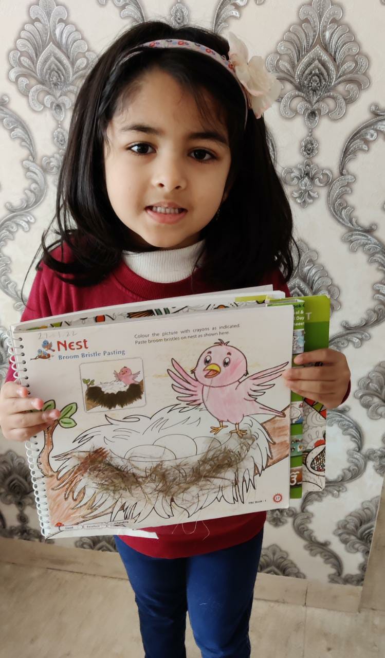 The students of pre-Primary made a bird nest by pasting broom bristles on nest in the PAC book to showcase their creativity. Students were completely engrossed in the activity. They pursued and assimilated about migratory birds and bird’s habitat with the help of their teacher.