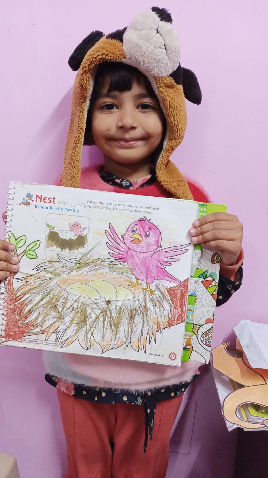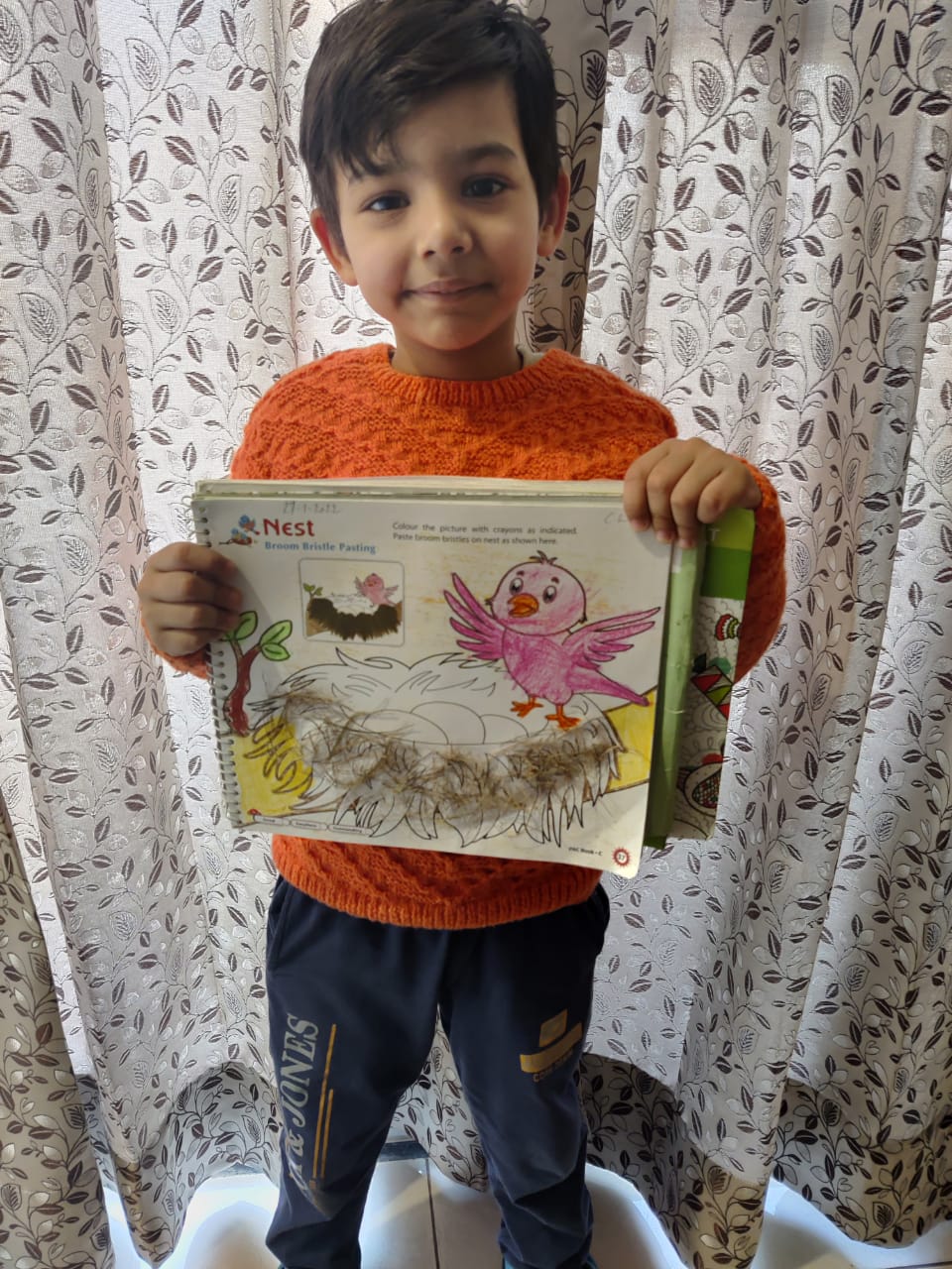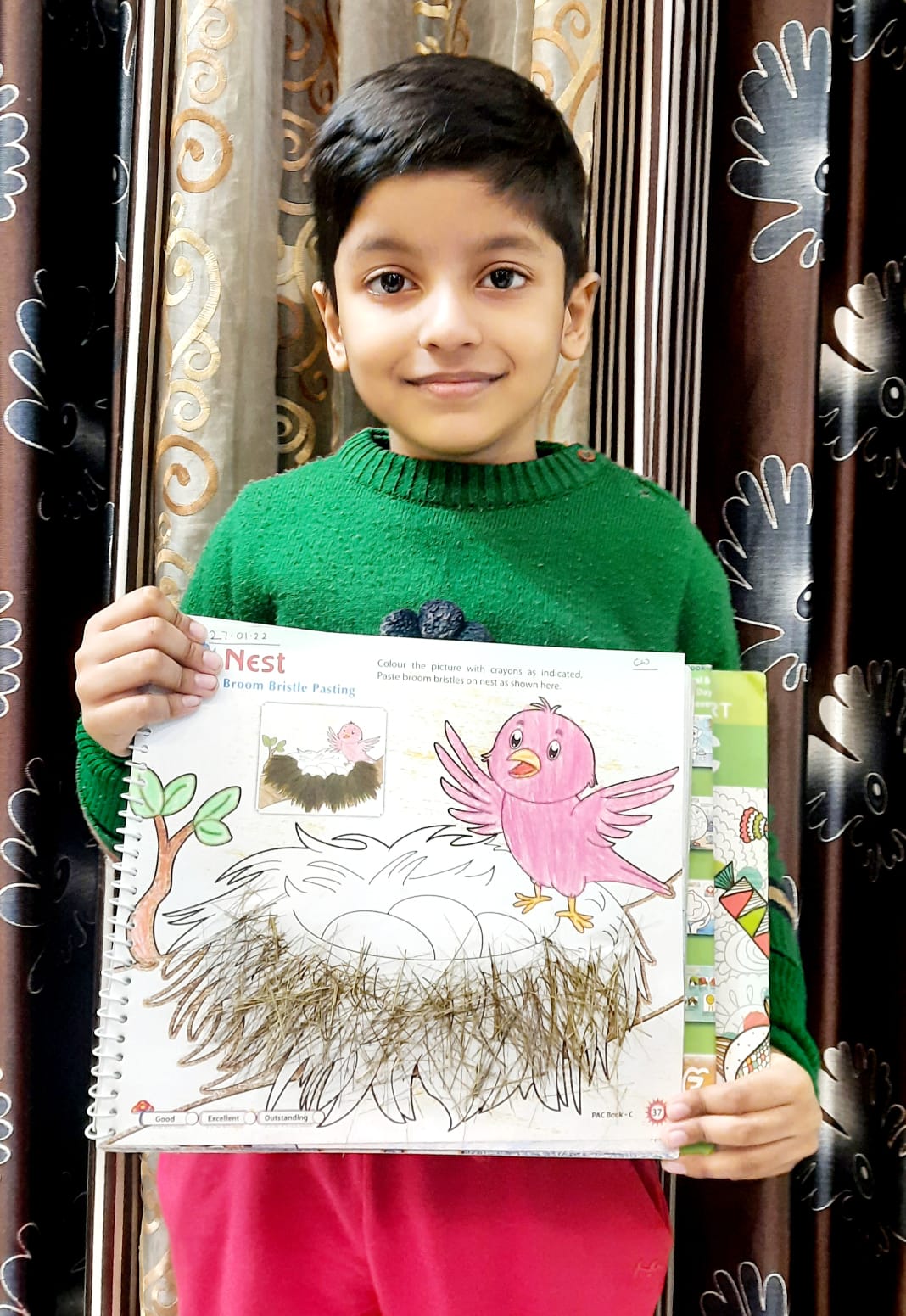 The students of pre-Primary made a bird nest by pasting broom bristles on nest in the PAC book to showcase their creativity. Students were completely engrossed in the activity. They pursued and assimilated about migratory birds and bird’s habitat with the help of their teacher.