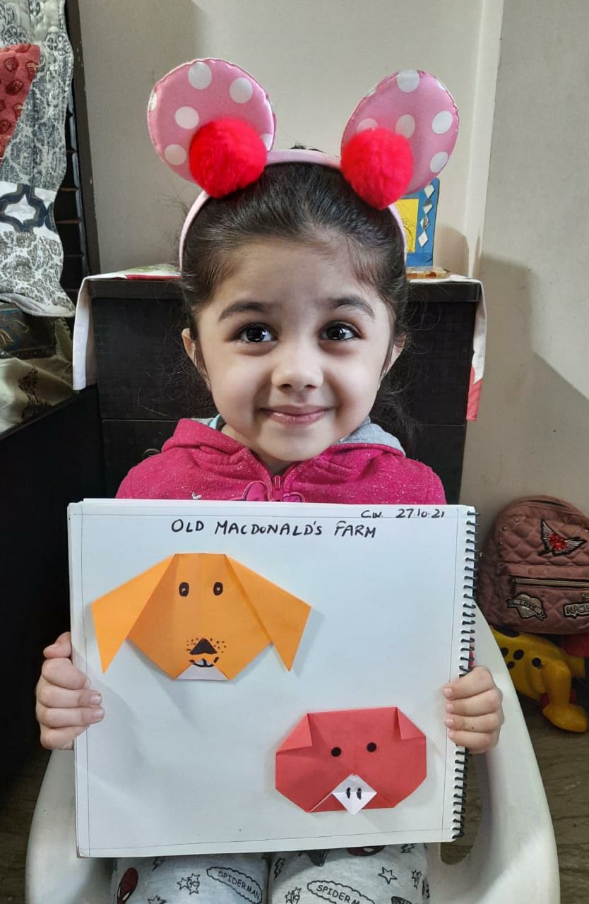 Origami provided our little ones with wonderful “schematic learning through repeatable actions”. As the teachers virtually demonstrated, children watched closely and listened carefully to the specific instructions and then carried them with originality, neatness and accuracy.