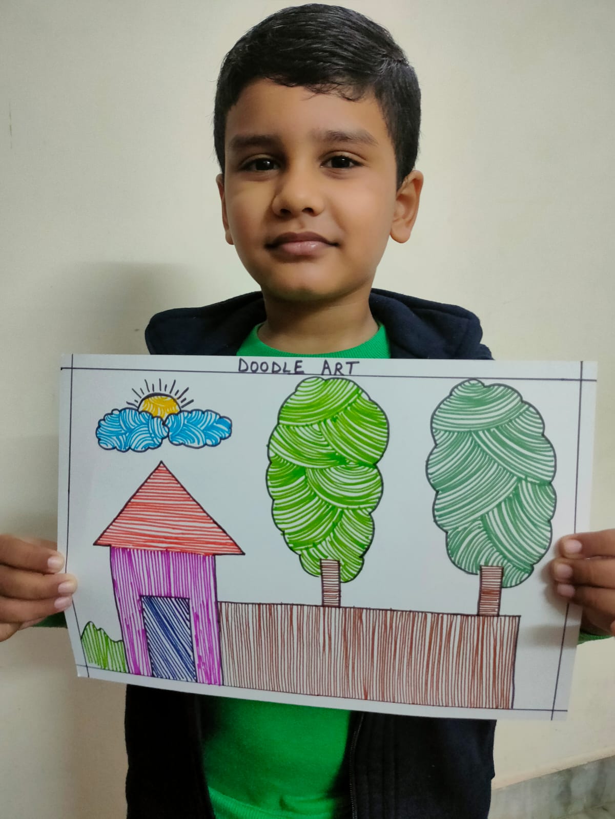 This activity was organized to explore and encourage creativity in children and offer them a platform to show their skill in “Doodle Art” and develop their fine motor skills, by improving their hand-eye coordination. The students were instructed to make a beautiful scenery and apply creative doodle colouring effects using sketch colours.
