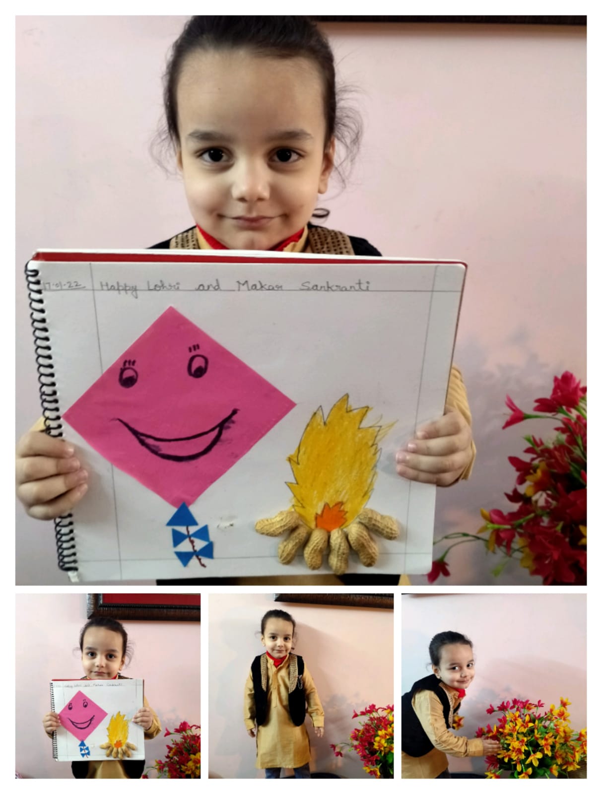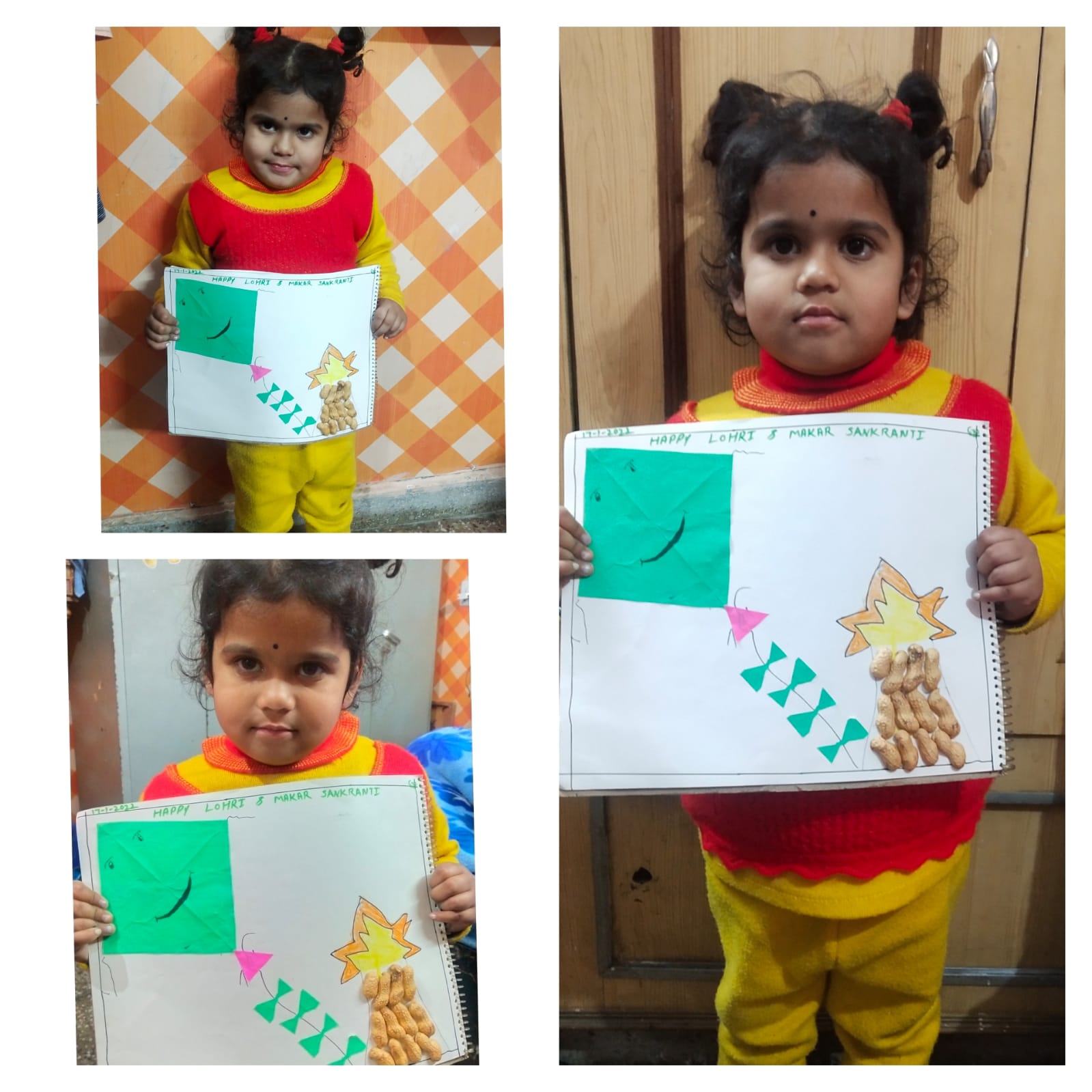 Students had a gala time as they tapped their feet on Punjabi music . They also showcased their innovative and artistic sides by making kites , new year cards in vibrant and glittering colours and last but not the least they shared gajak, peanuts, popcorn and rewri as a way of paying gratitude to nature’s bounty.