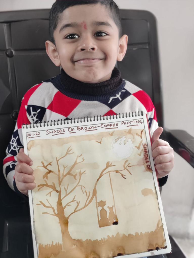 To make the learning process more inclusive, children from Preschool made a paper bird and Preprimary students showed their artistry in coffee painting using two shades of brown made using original coffee beans.