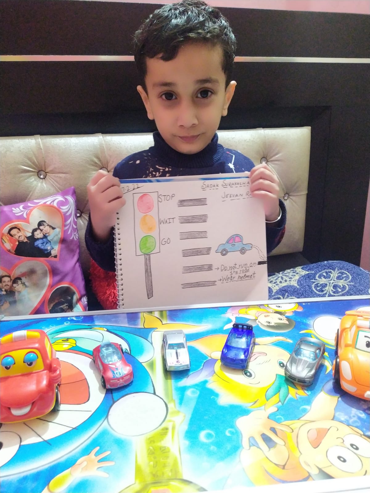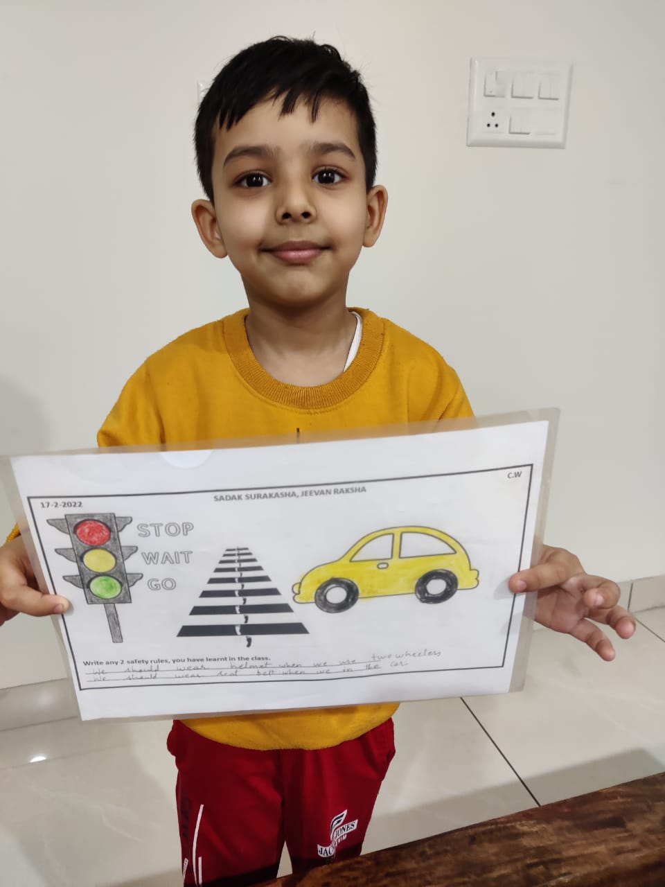 The students showcased their artistic skills by making a poster on road safety guidelines. Posters highlighting the observance of traffic rules helped to spread awareness among students and in turn their families.