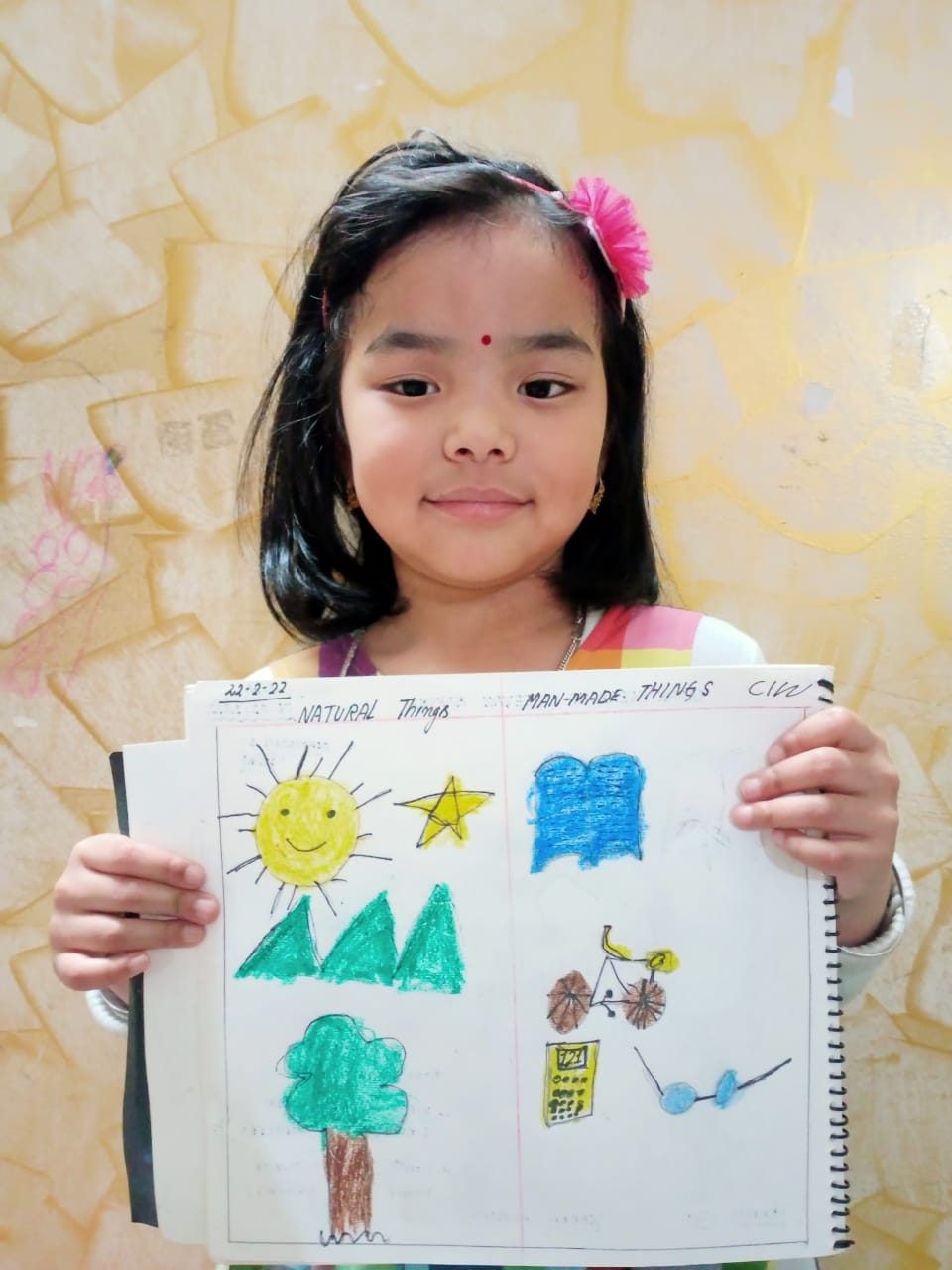 The students of pre-primary made a free hand drawing related to man made and natural things to showcase their creativity. Students enjoyed the activity. They pursued and assimilated about man made and natural things with the help of their teacher. This activity enhanced dexterity, fine motor skills and helped to boost the self-confidence of the children.