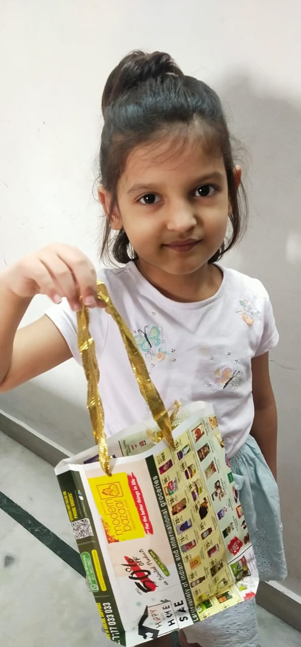 The objective of the drive was to indulge students in the habit of recycling by teaching them how to make paper bags and making them aware about the threat of plastic bags to the environment. They shared their thoughts on how they can contribute towards Saving Mother Nature by being an active individual. They all exhibited their hand-made bags and clicked some amazing pictures with their handmade paper bags.